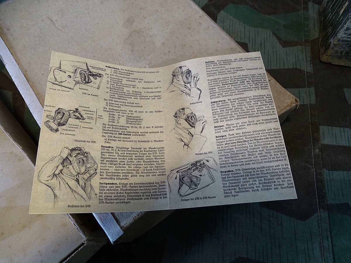 Produktinformationen "Luftschutz Volksgasmaske DM 40 "M" in Pappkarton, m. Beschreibung u.Filter"