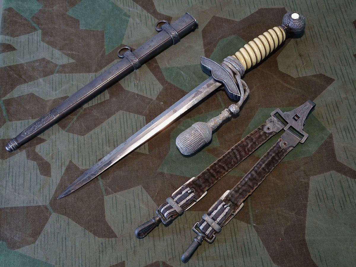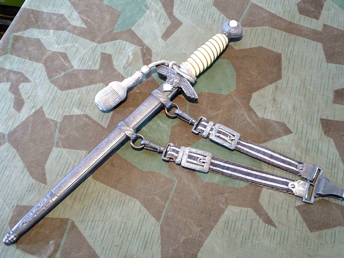 Luftwaffen Offiziersdolch, weißer Griff, mit Gehänge und Portepee