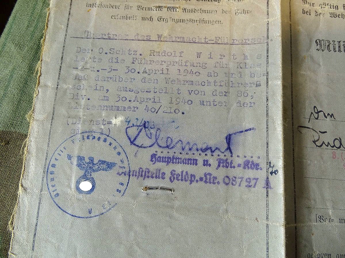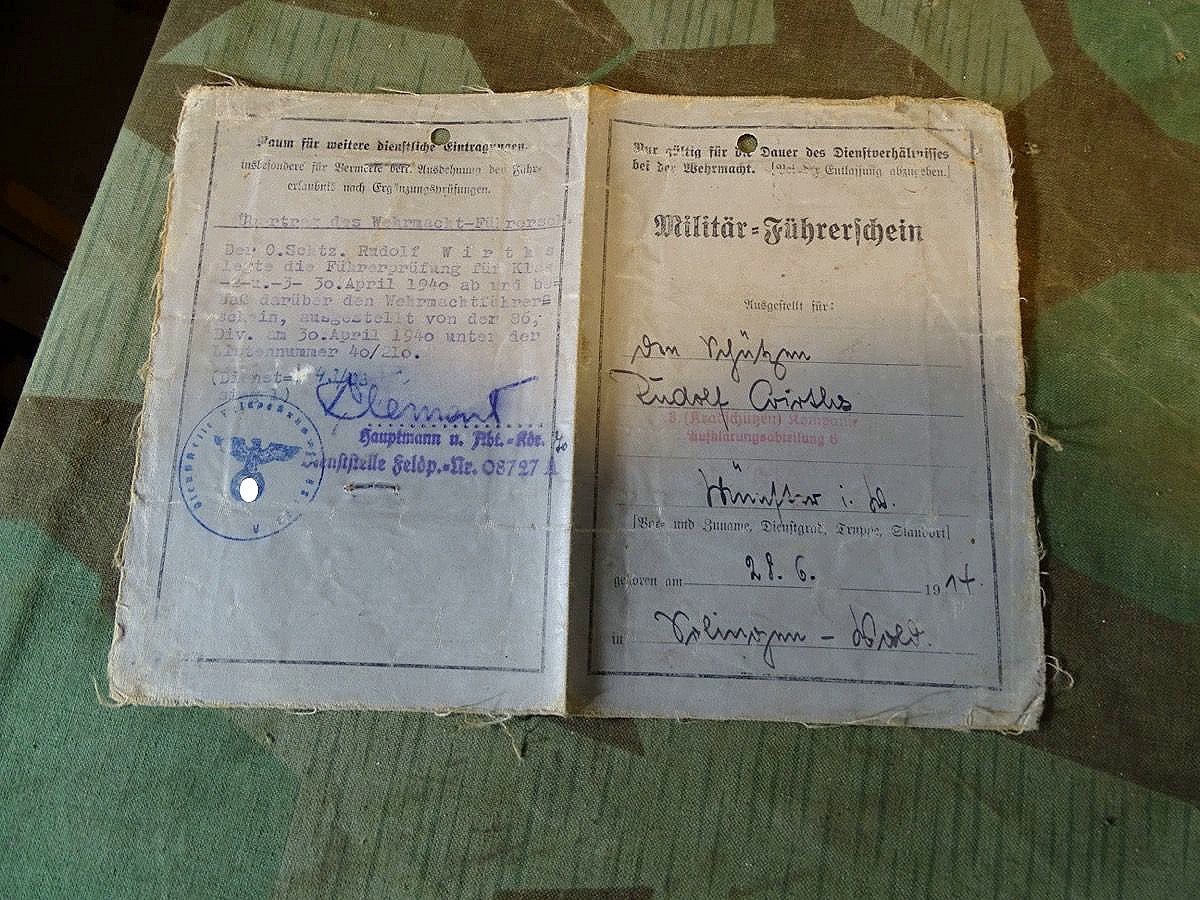 Produktinformationen "Militär / Wehrmachts Führerschein, R. Wirths aus SG-Wald, 3 Kradschützen Kp. Aufklärungs. Abt. 6, Bild"
