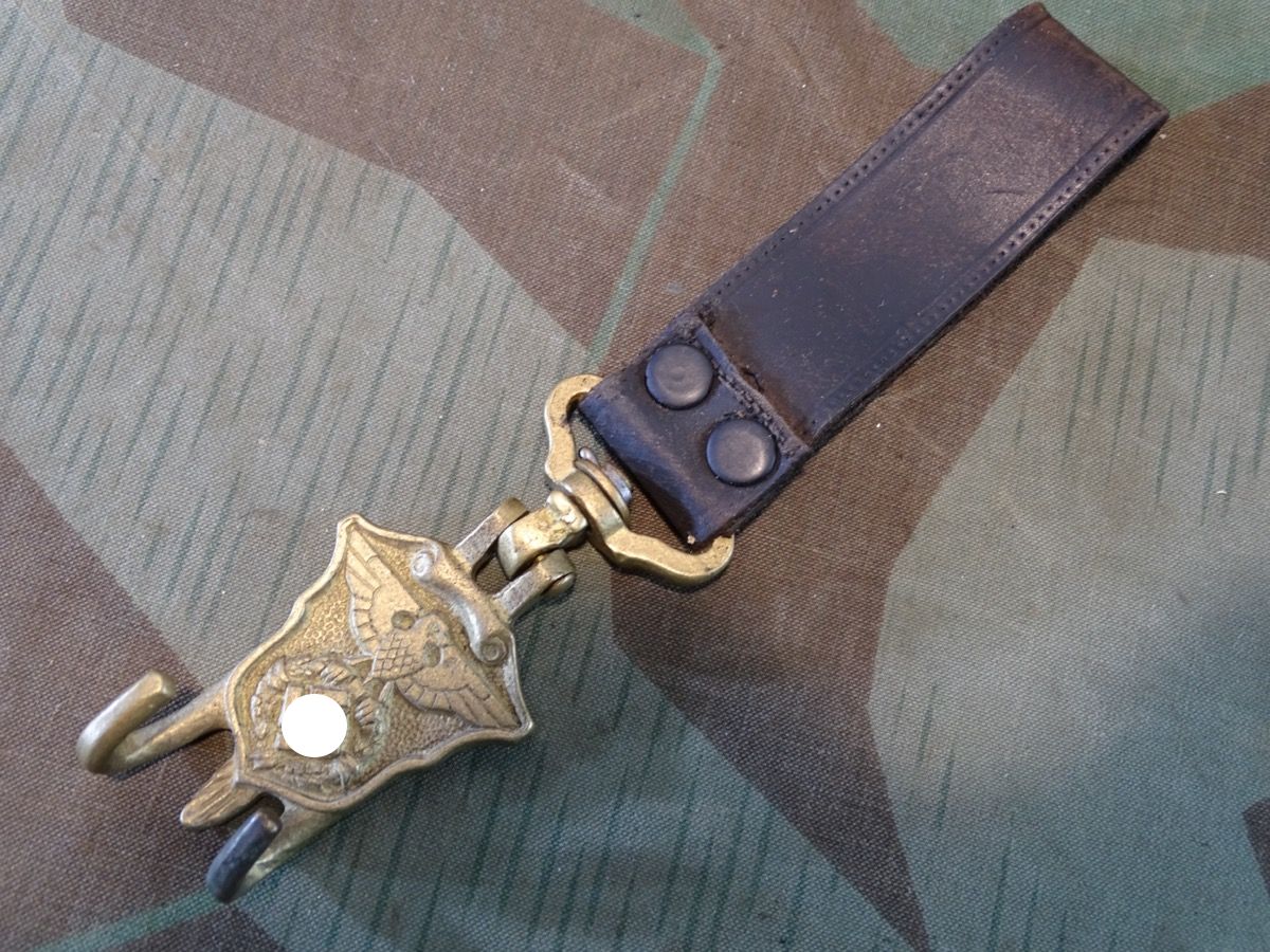 so verwendet bei Musikzügen der NSDAP und weiterer politischer NS Organisationen 1928-45, massiv Messing. Mit Adler / HK an Lederhänger.