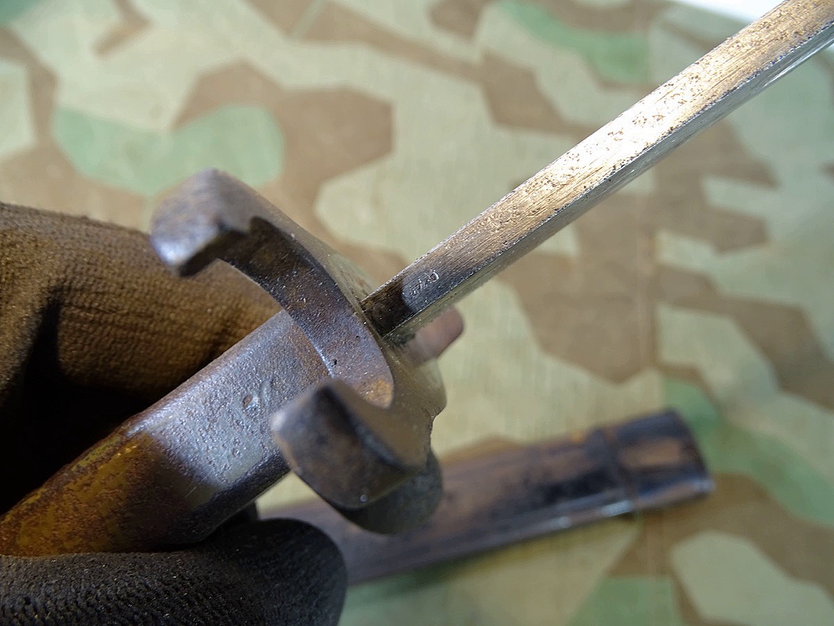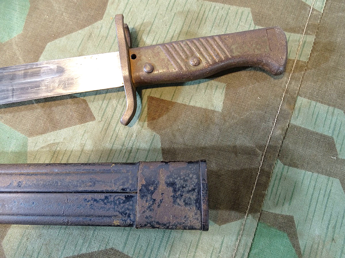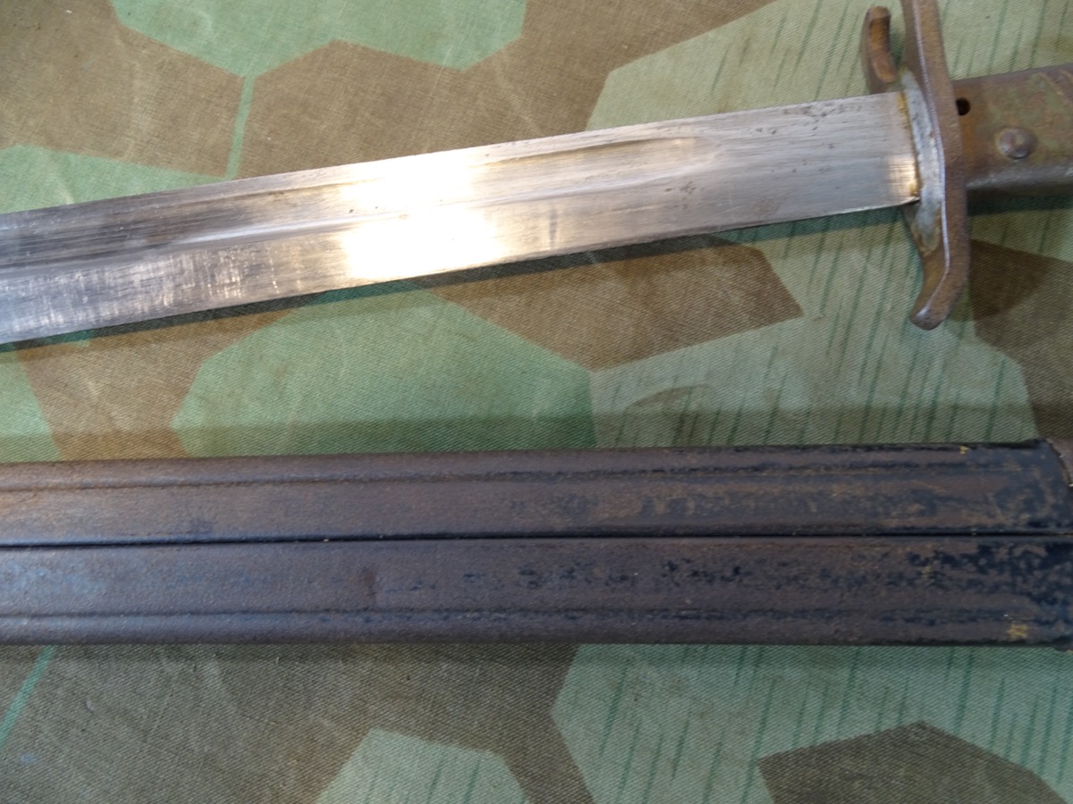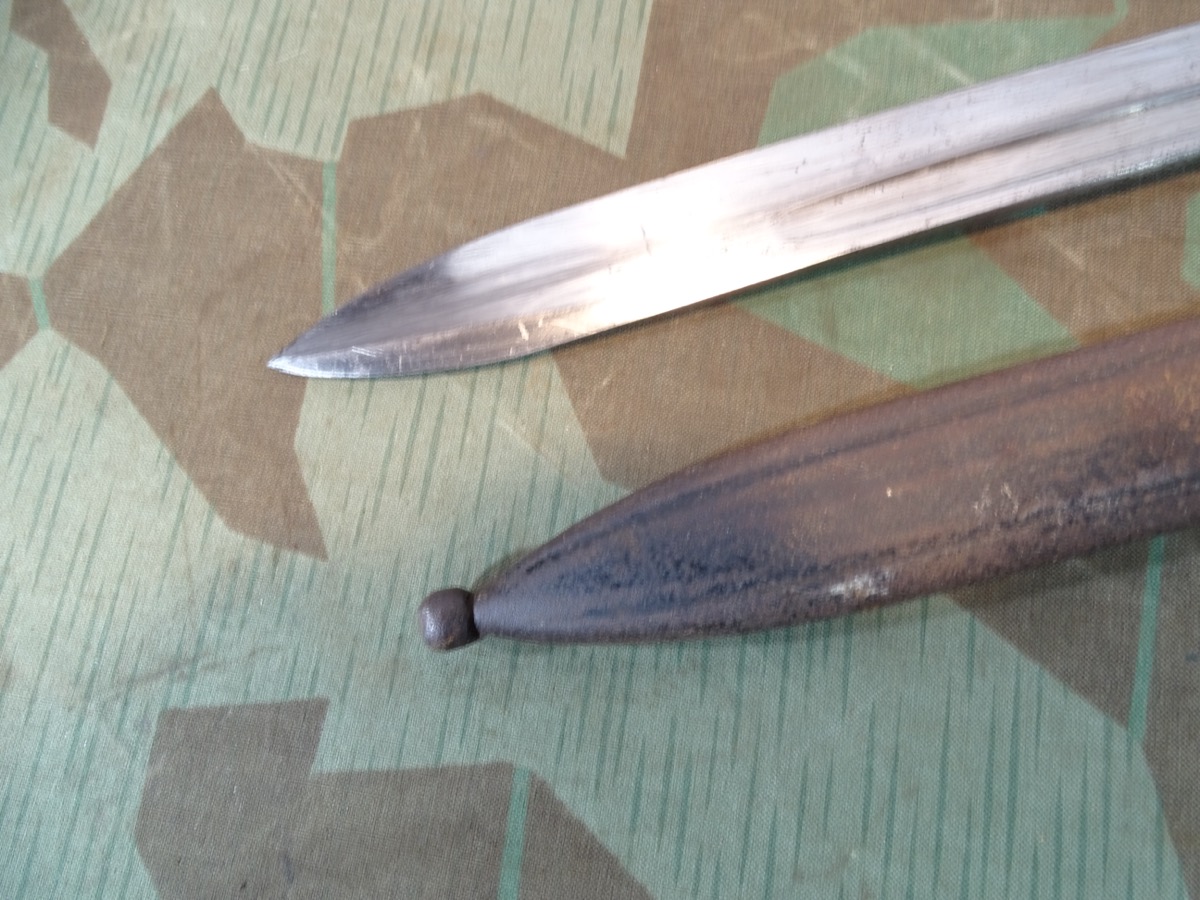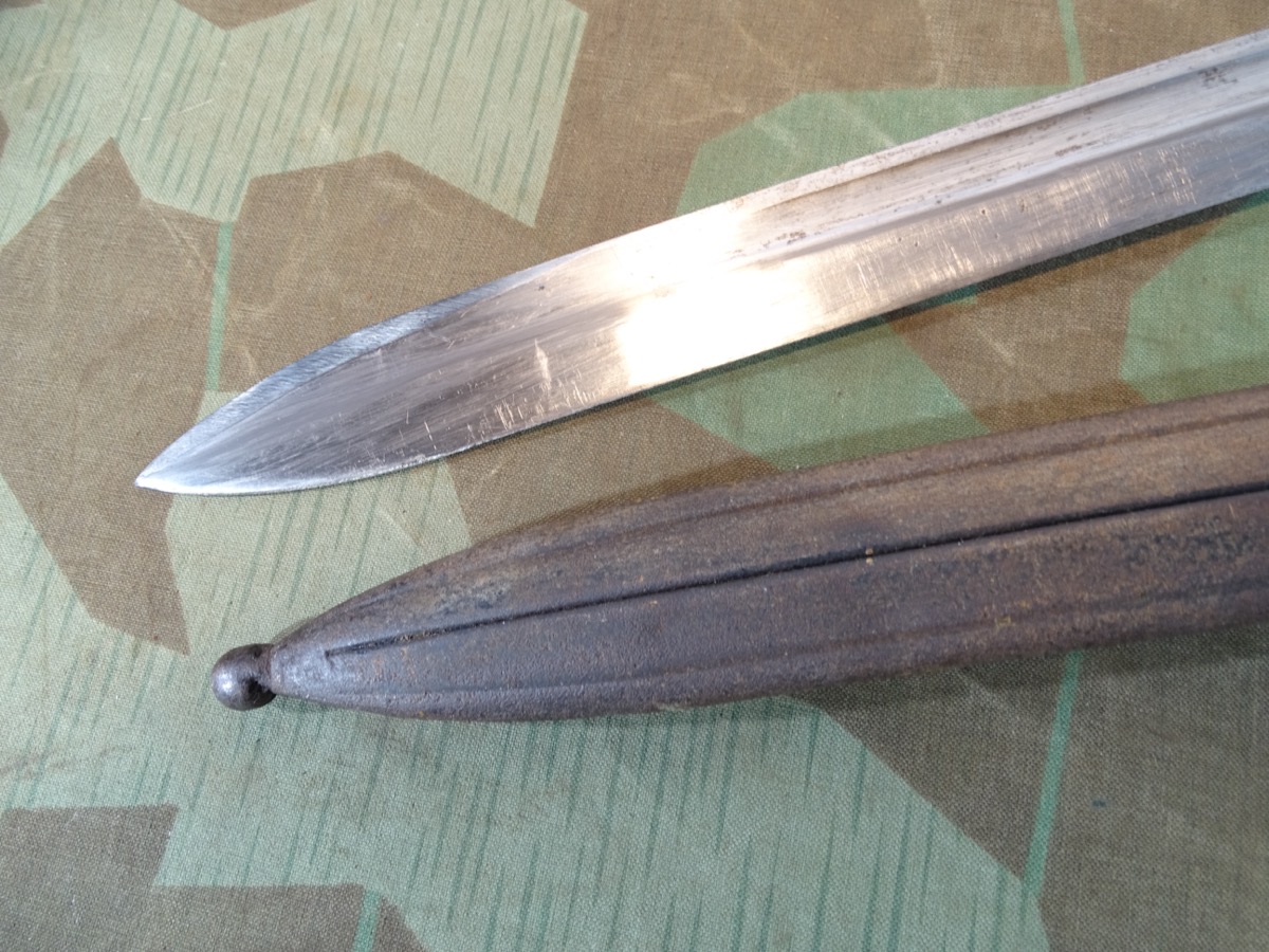 Produktinformationen "Notbajonett, Ersatzbajonett, deutsches Kaiserreich mit Blechprägescheide, seltene Variante"
