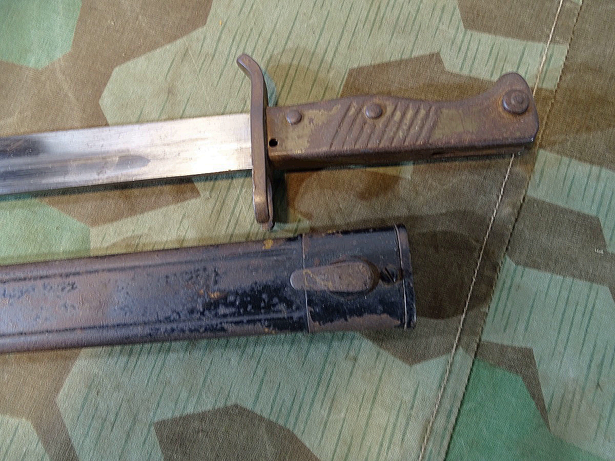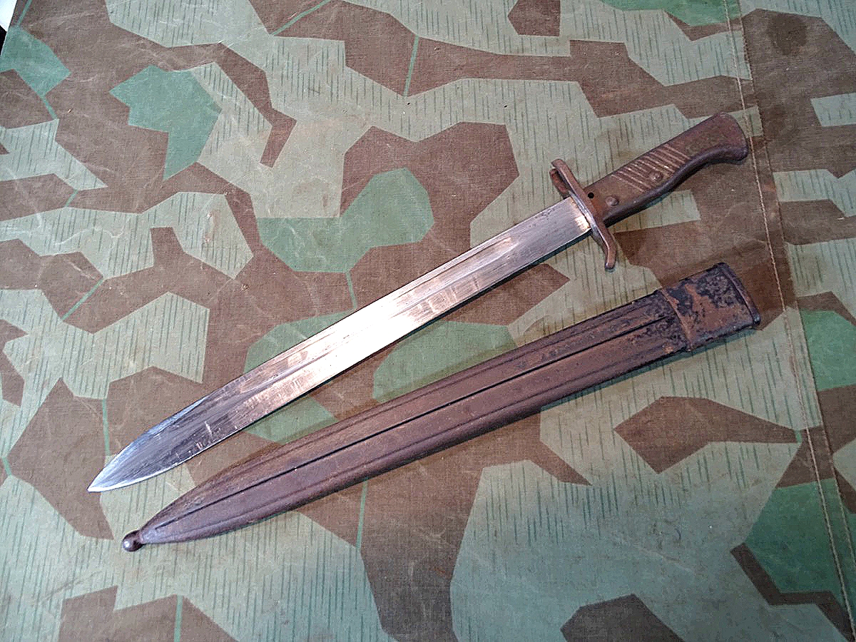 Notbajonett, Ersatzbajonett, deutsches Kaiserreich mit Blechprägescheide, seltene Variante
