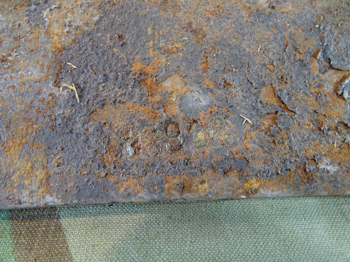 NO SHIPPING TO FOREIGN COUNTRYS, KEIN VERSAND INS AUSLAND. Sie erhalten genau das abgebildete Stück. Ungereinigter Fundzustand aus ausländischem Arsenal. Unten mit Zahlenstempel, könnte 1918 heißen, kann aber auch eine Waffennummer sein. Originalfarbe noch teileweise erhalten. Originalstück aus dem 1. oder 2. Weltkrieg. Gesuchtes Erstatzeil, da die Deko Maxim MG´s häufig auch ohne Schild in den Handel kamen. Gebrauchtes Originalstück.