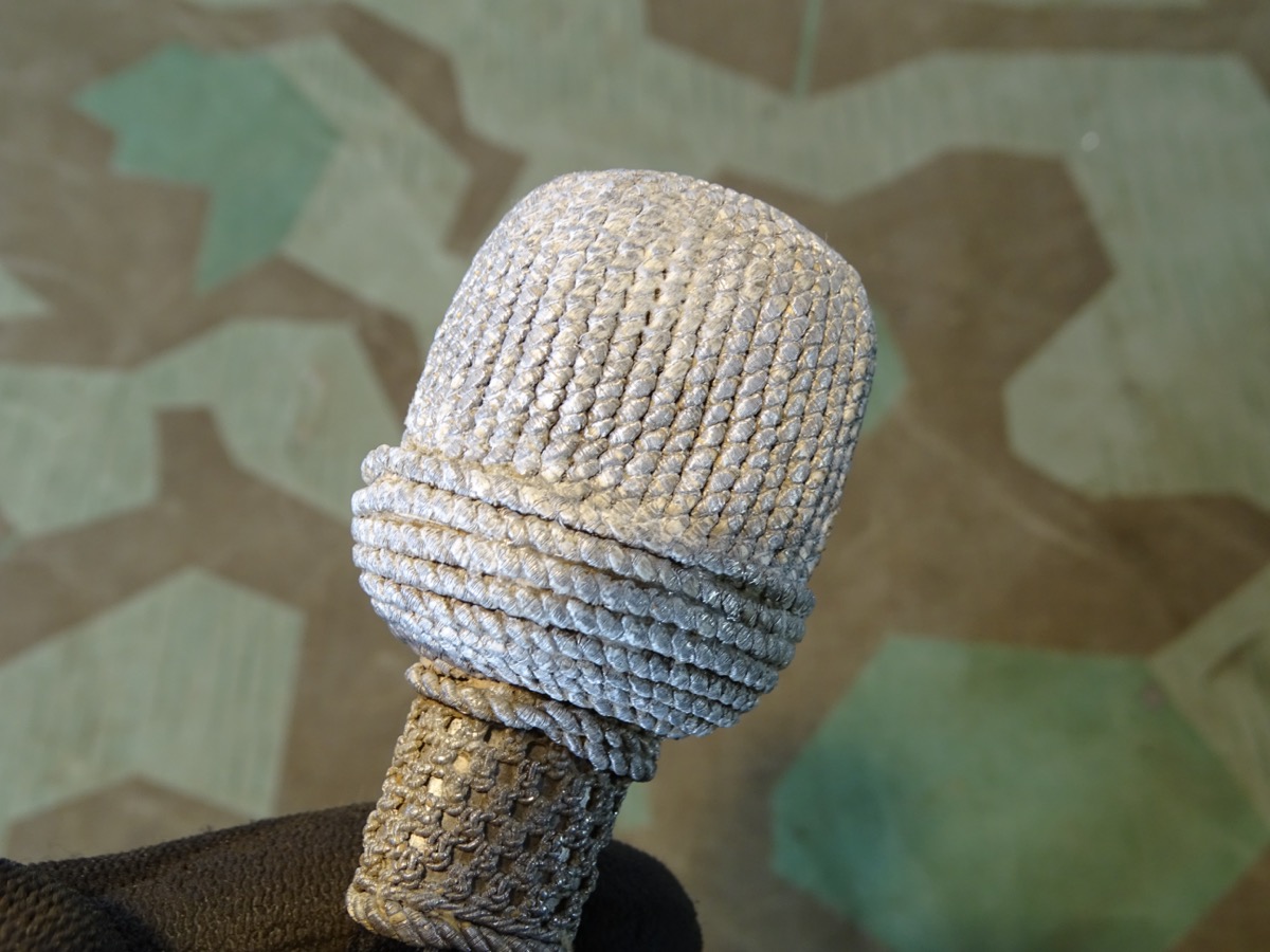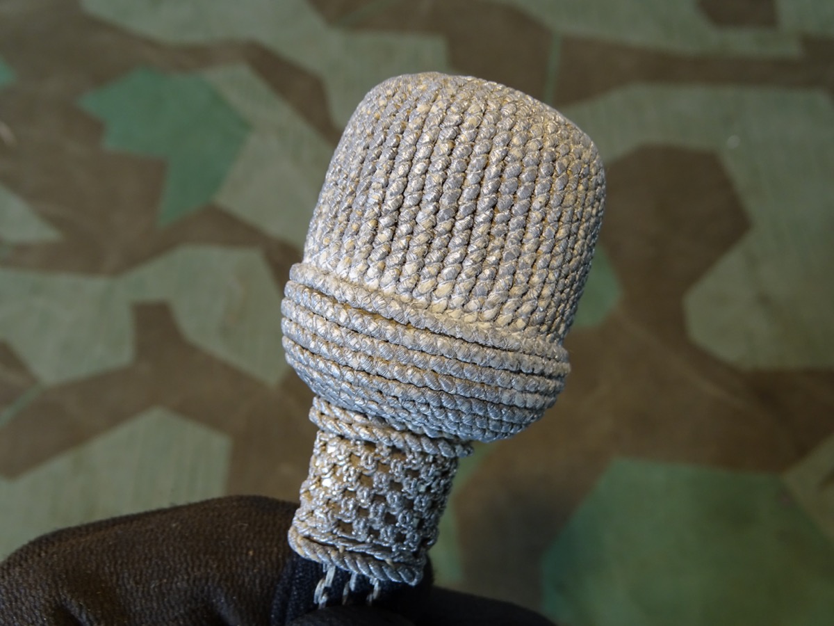 Portepee für den SS Führersäbel der Verfügungstruppe. Schwarzes Stoff Band mit 3 silbernen Durchzügen, fast neuwertiges Stück