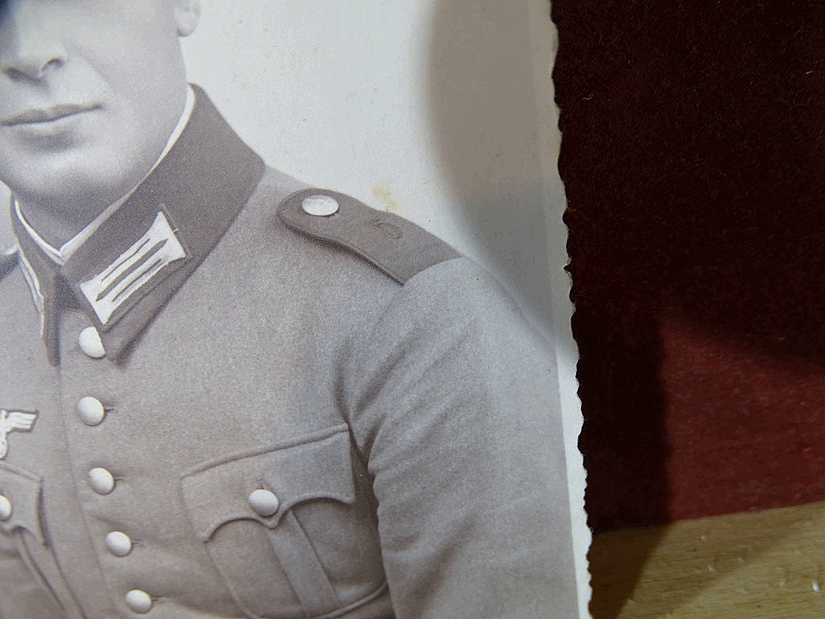 Beschriftet 18 Okt. 1935. Waffenfarbe dunkel könnte rot oder schwarz sein. ( Artillerie oder Pionier ? ) Nr. auf Schulterklappe Rgt. Nr. 5