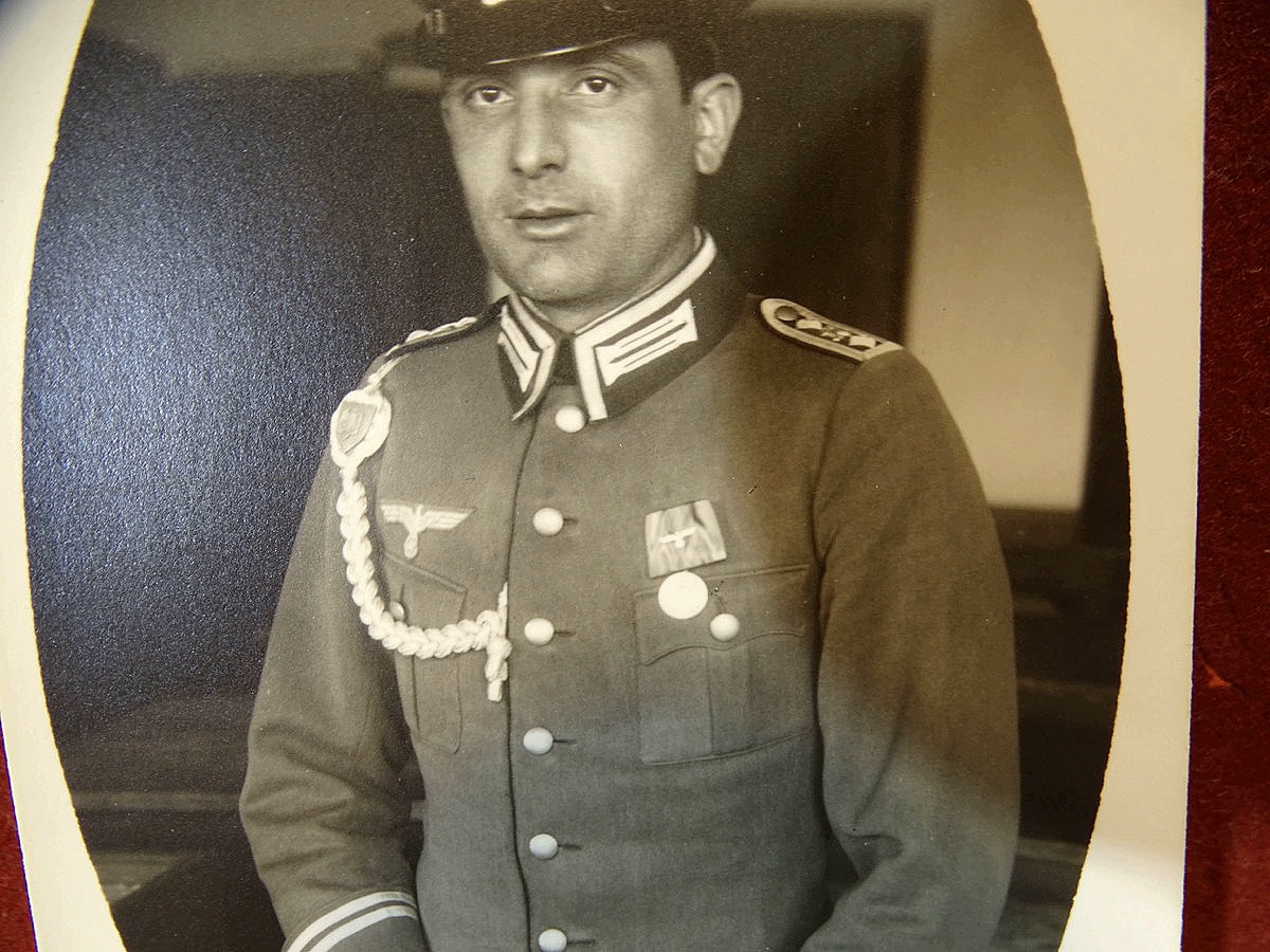 In geschönter Feldbluse mit dunkler ( Schwarzer?/ Pionier ? ) Paspel an Knopfleiste, mit Schützenschnur und Dienstzeitmedaille des Heeres. Ungelaufen