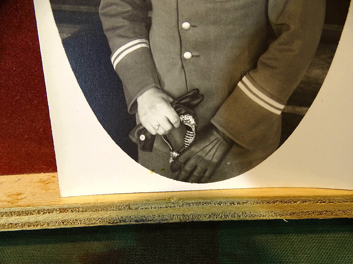 Produktinformationen "Portrait Postkarte, ( Pionier ? )Haupt Feldwebel " Spieß" mit " Kolbenringen", Schirmmütze, Löwenkopfsäbel, "
