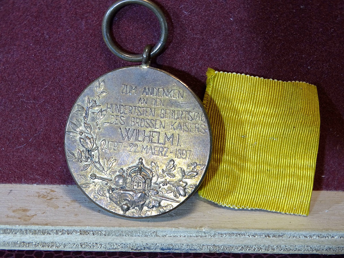 Preussen, Centenaermedaille, zum 100. Geburstag von Kaiser Wilhelm I. mit Bandstück