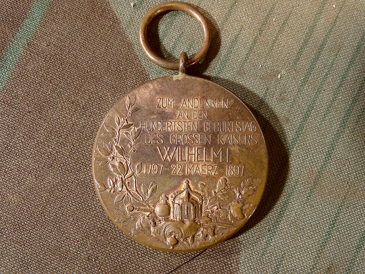 Buntmetall vergoldet, Zentenarmedaille (Centenarmedaille) „Medaille zur Erinnerung an den 100sten Geburtstag des grossen Kaisers und Königs Wilhelm I., 1797 -22. März 1897“.. Zustand siehe Fotos