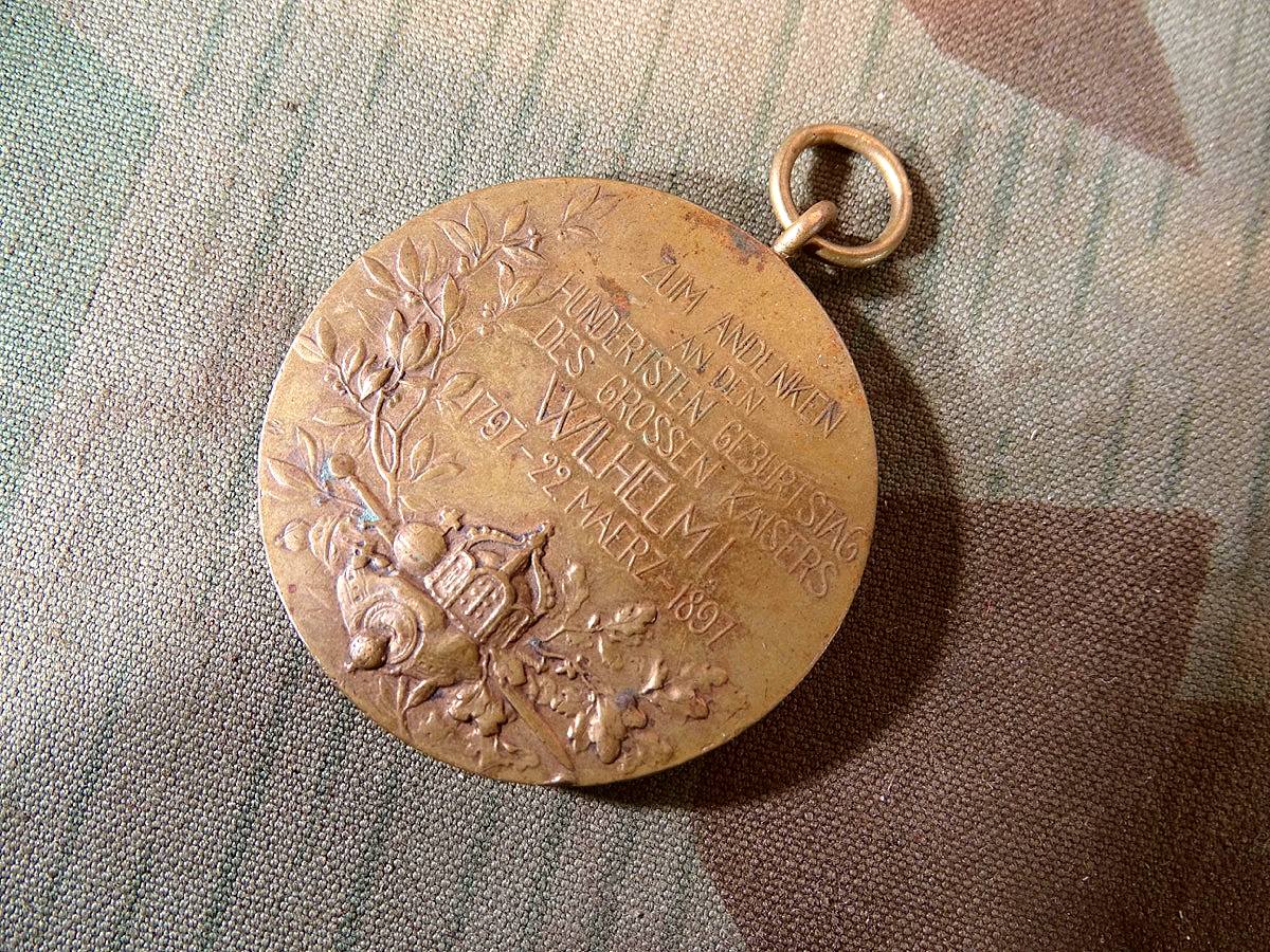 Buntmetall vergoldet, Zentenarmedaille (Centenarmedaille) „Medaille zur Erinnerung an den 100sten Geburtstag des grossen Kaisers und Königs Wilhelm I., 1797 -22. März 1897“. Zustand siehe Fotos