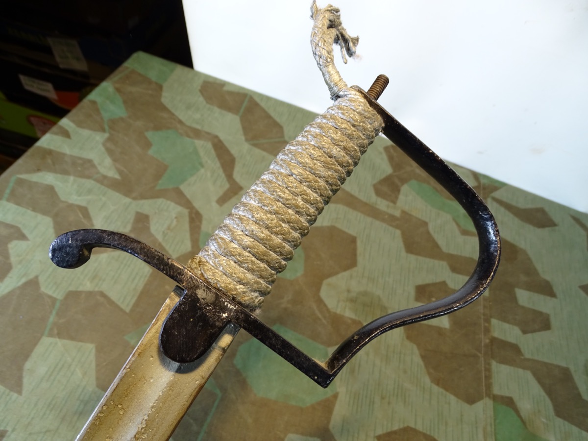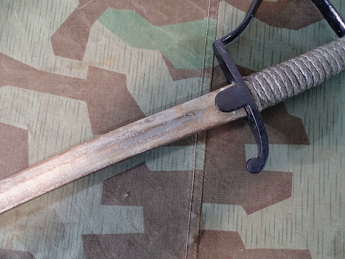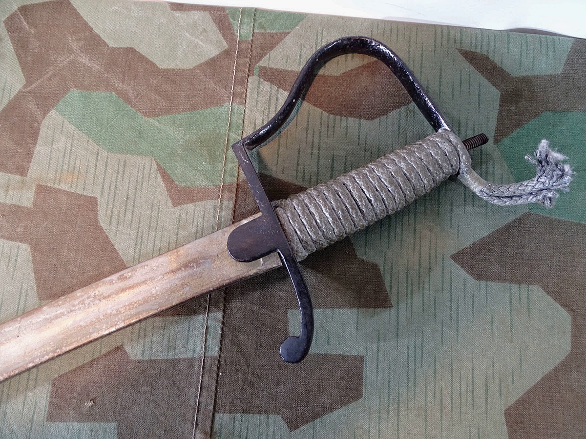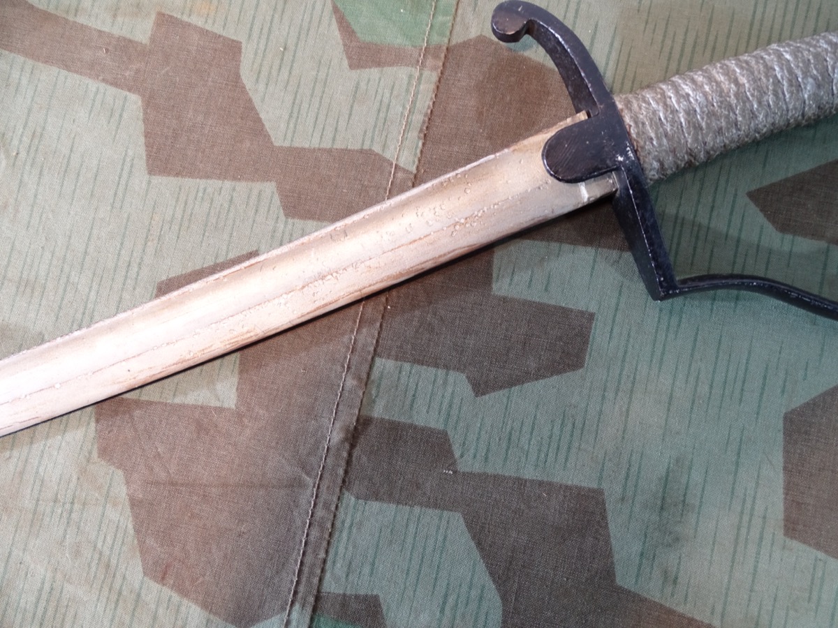 Vom Vorbesitzer in den 1950er Jahren in einer Scheune gefunden und als Dekorationsobjekt aufgearbeitet worden. Klingenlänge ca. 74 cm. Waffenlänge ca. 87,3 cm. Bei Bestellung bitte Altersnachweis mailen oder senden (Kopie vom Personalausw.) Zustand siehe Fotos
