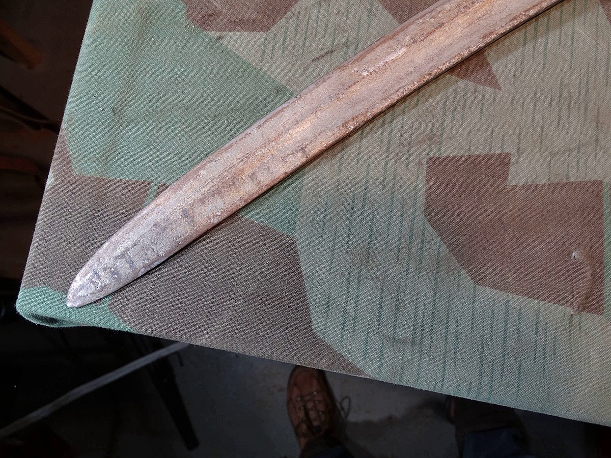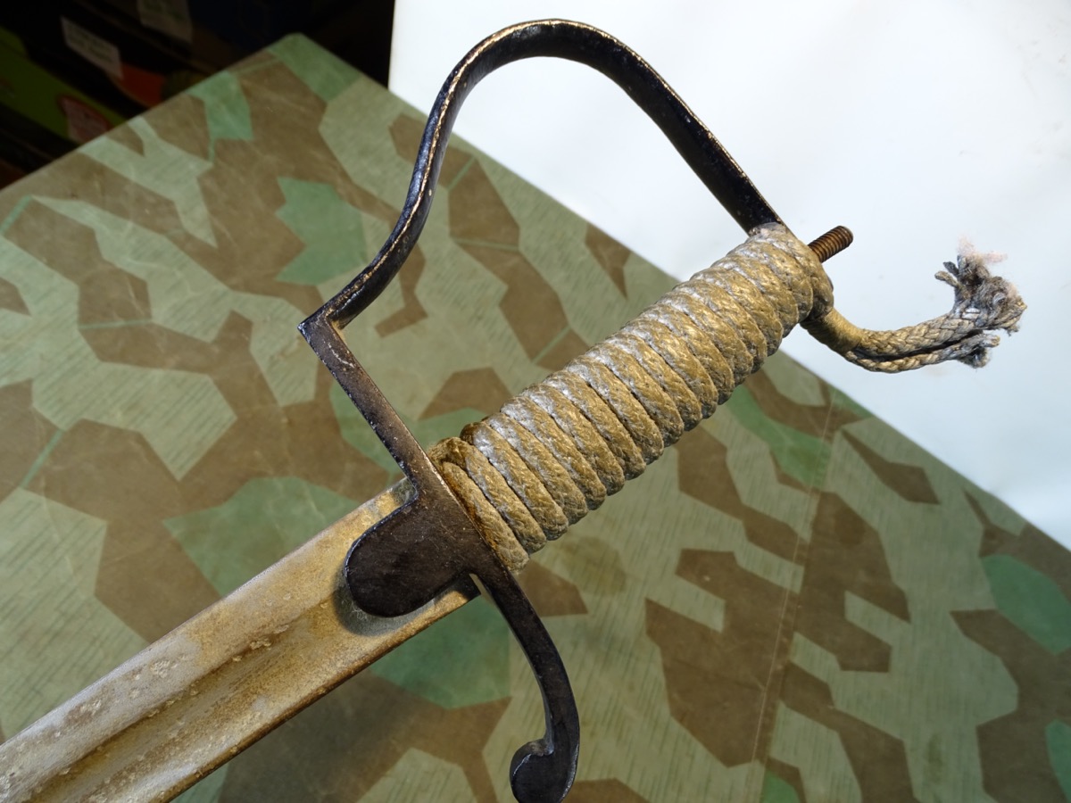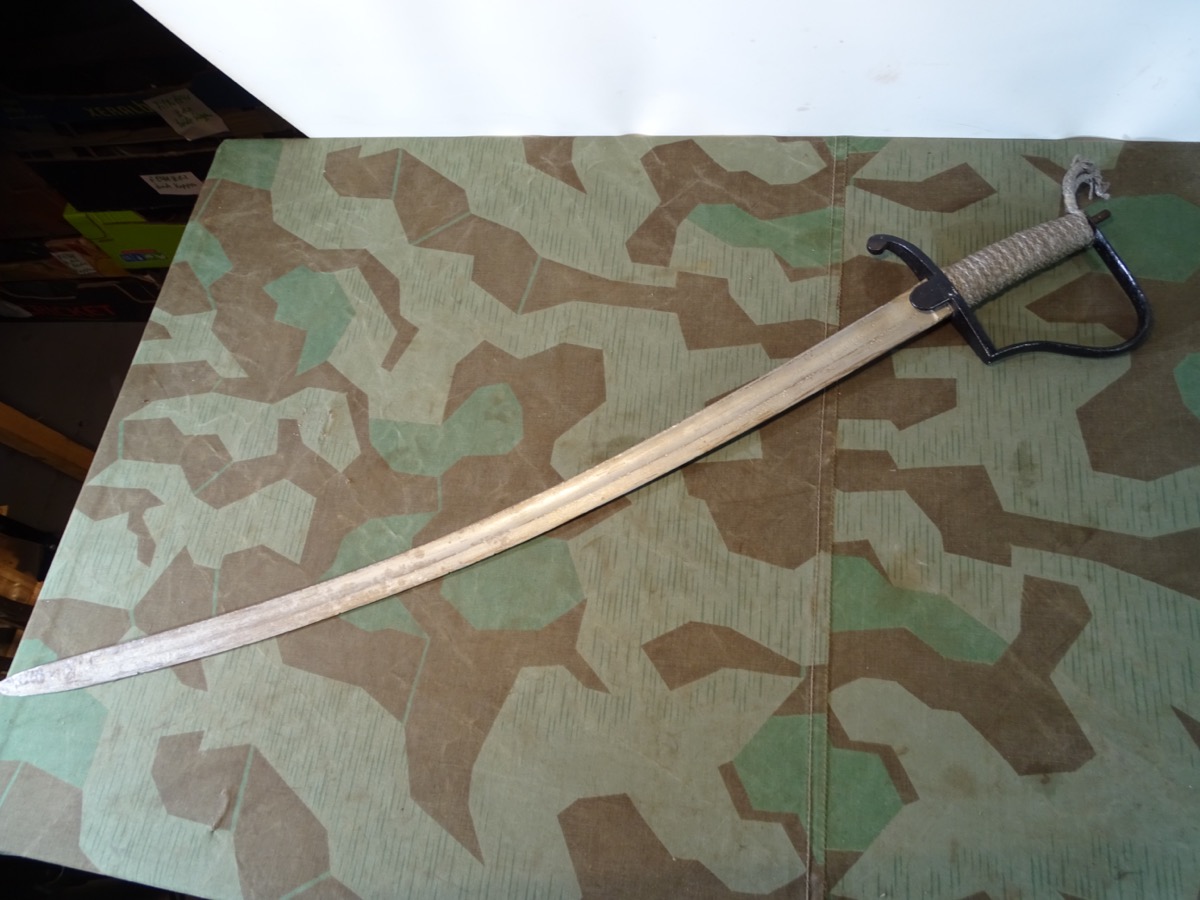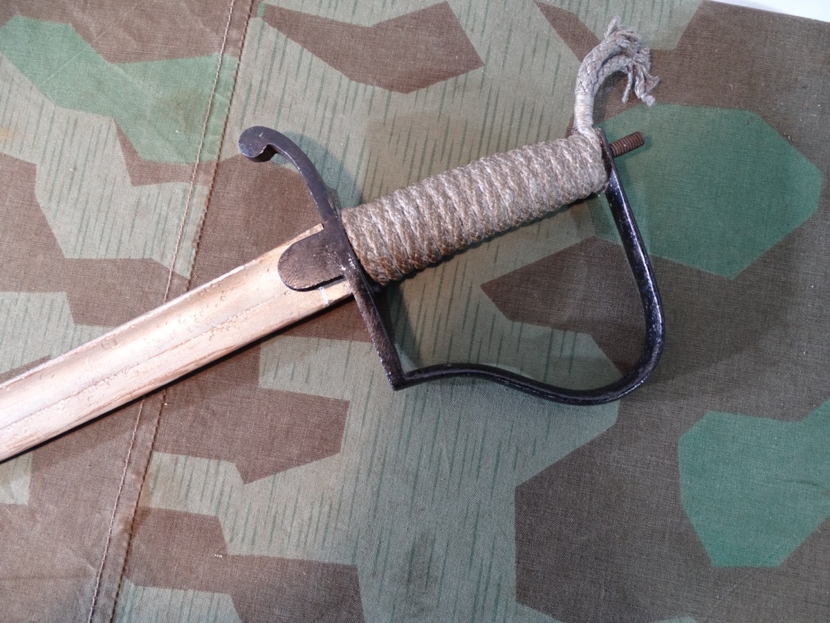 Vom Vorbesitzer in den 1950er Jahren in einer Scheune gefunden und als Dekorationsobjekt aufgearbeitet worden. Klingenlänge ca. 74 cm. Waffenlänge ca. 87,3 cm. Bei Bestellung bitte Altersnachweis mailen oder senden (Kopie vom Personalausw.) Zustand siehe Fotos