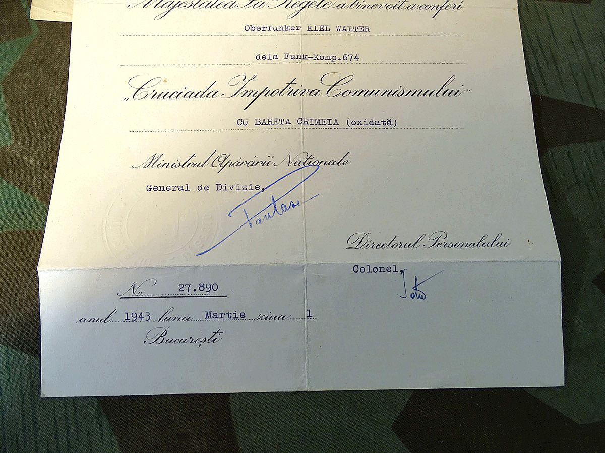 Produktinformationen "Schmuckurkunde Kreuzzug gegen den Kommunismus 1941 und Urkunde Krimschild, 2 Fotos. "