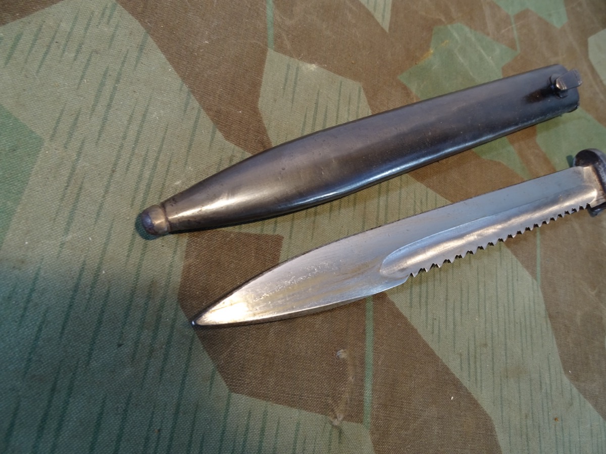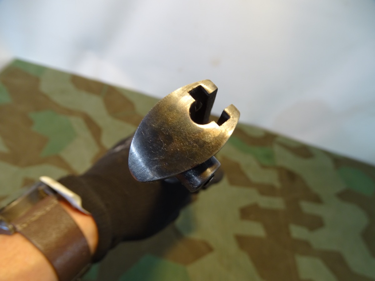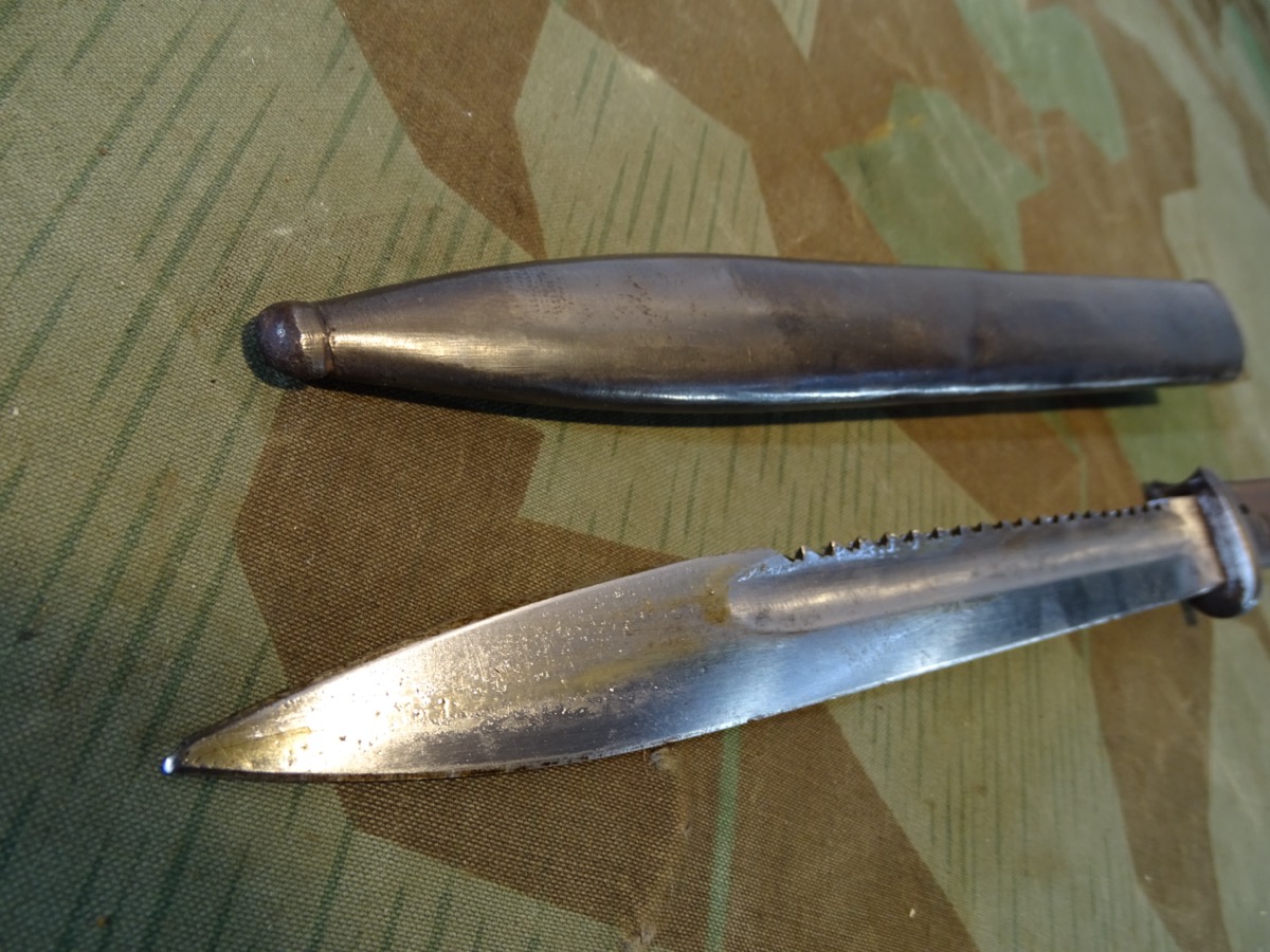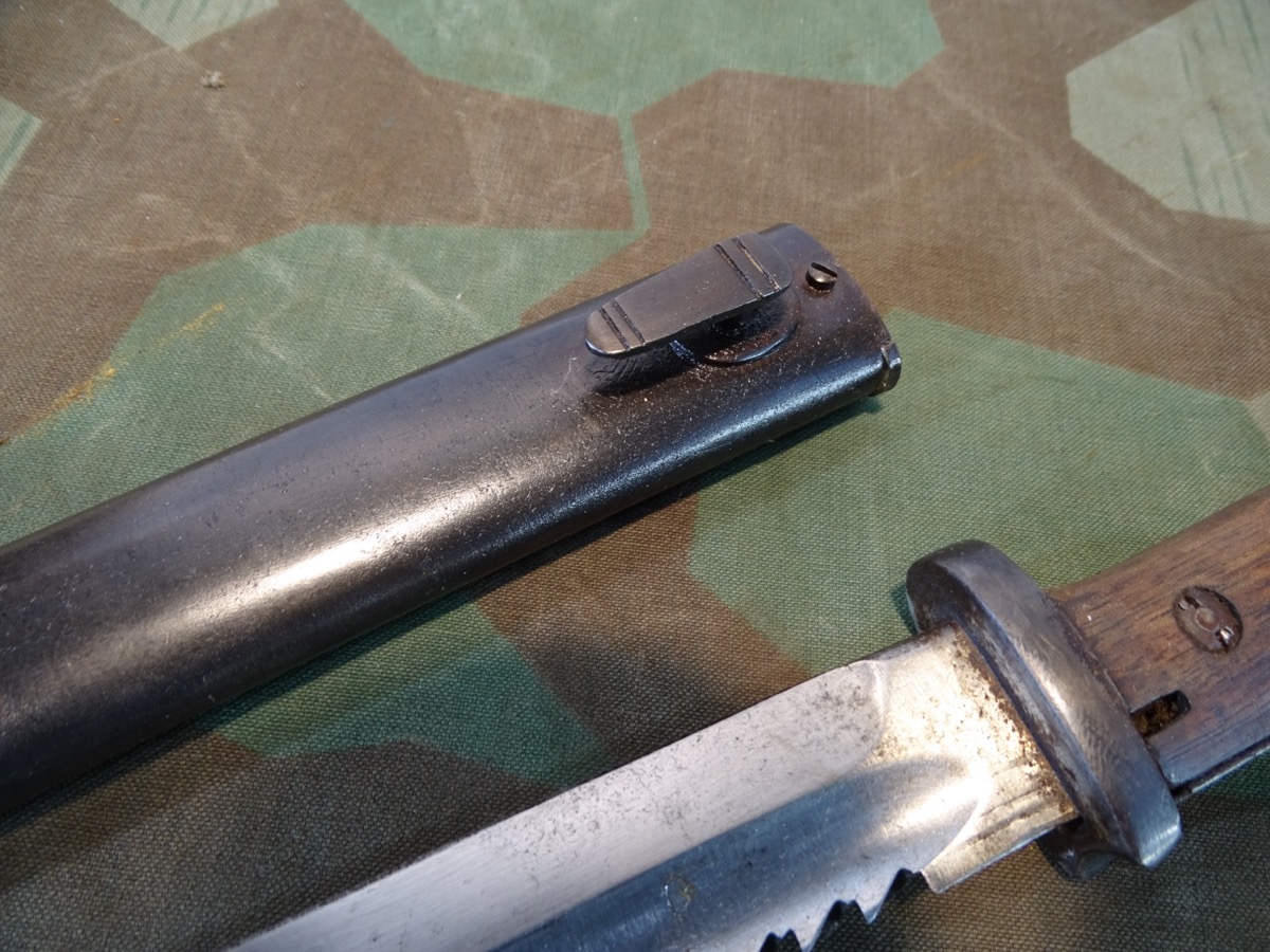 Ansprechender Zustand, siehe Fotos. Wohl mal im Laufe der Nutzung gereinigt und brüniert worden, daher nun fast komplett dunkel brüniert. Drücker klappt. Griffschalen gut erhalten. Klinge mit gut lesbarem Hersteller Gottlien Hammesfahr Solingen Foche. Klingenrücken mit kaiserlicher Waffenamtsabnahme, Buchstabe mit Krone. Scheide mit einer Beule, siehe Fotos. Frei verkäuflich ab 18 Jahren. Bei Bestellung bitte Altersnachweis mailen oder schicken ( Kopie / Foto vom gültigen Personalausweis)