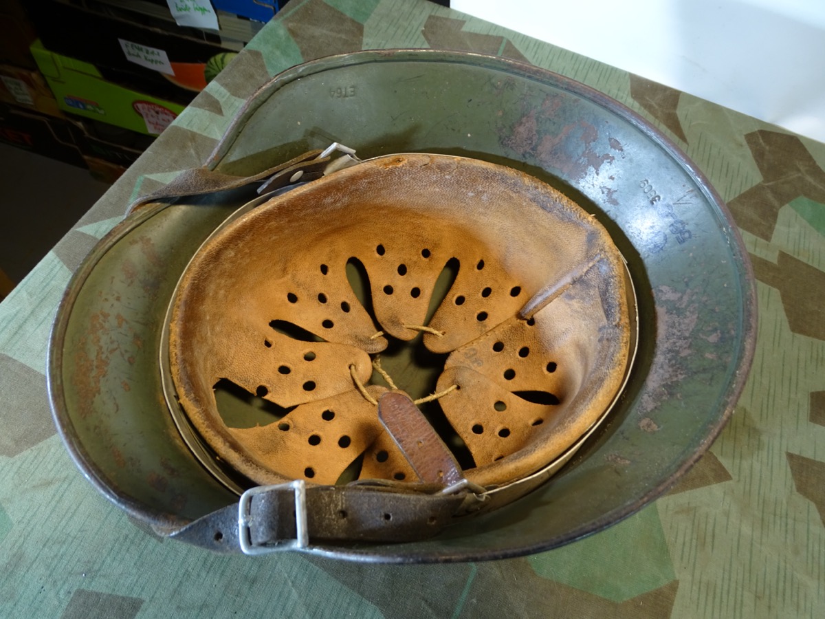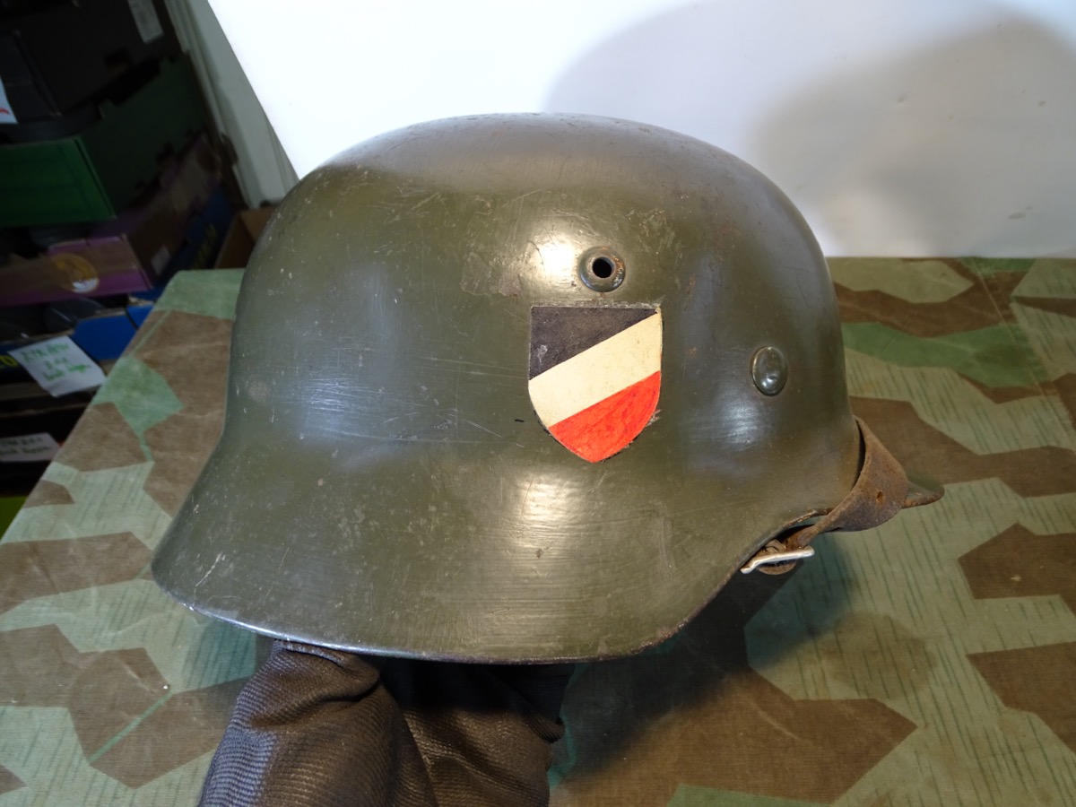 Produktinformationen "Stahlhelm M 35 Wehrmacht Heer, Adler Wappen, original Innenhelm u Kinnriemen"