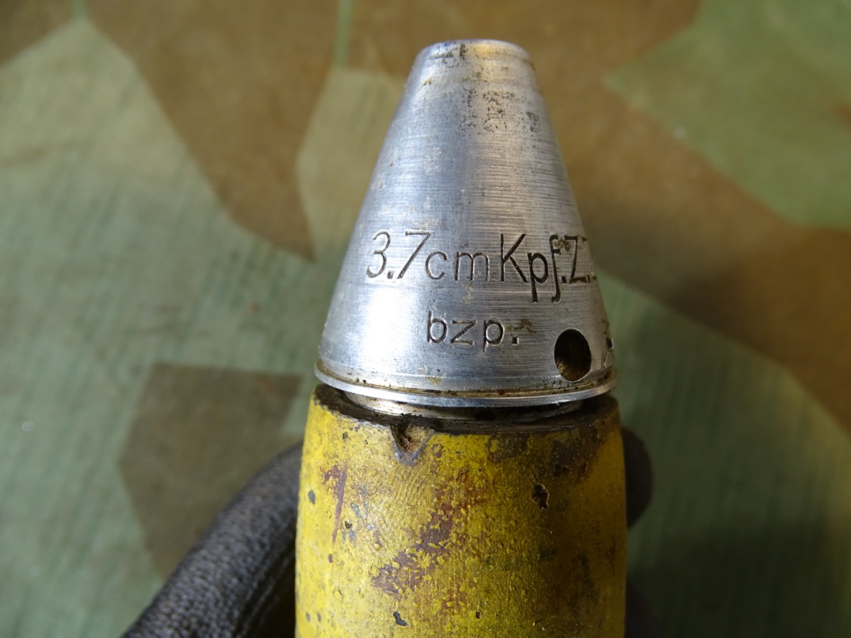 TOP 3,7cm Spreng Flak Granate Flak 18, Originalfarbe, Aluzünder, Leuchtspurhülse, Ladungssäckchen