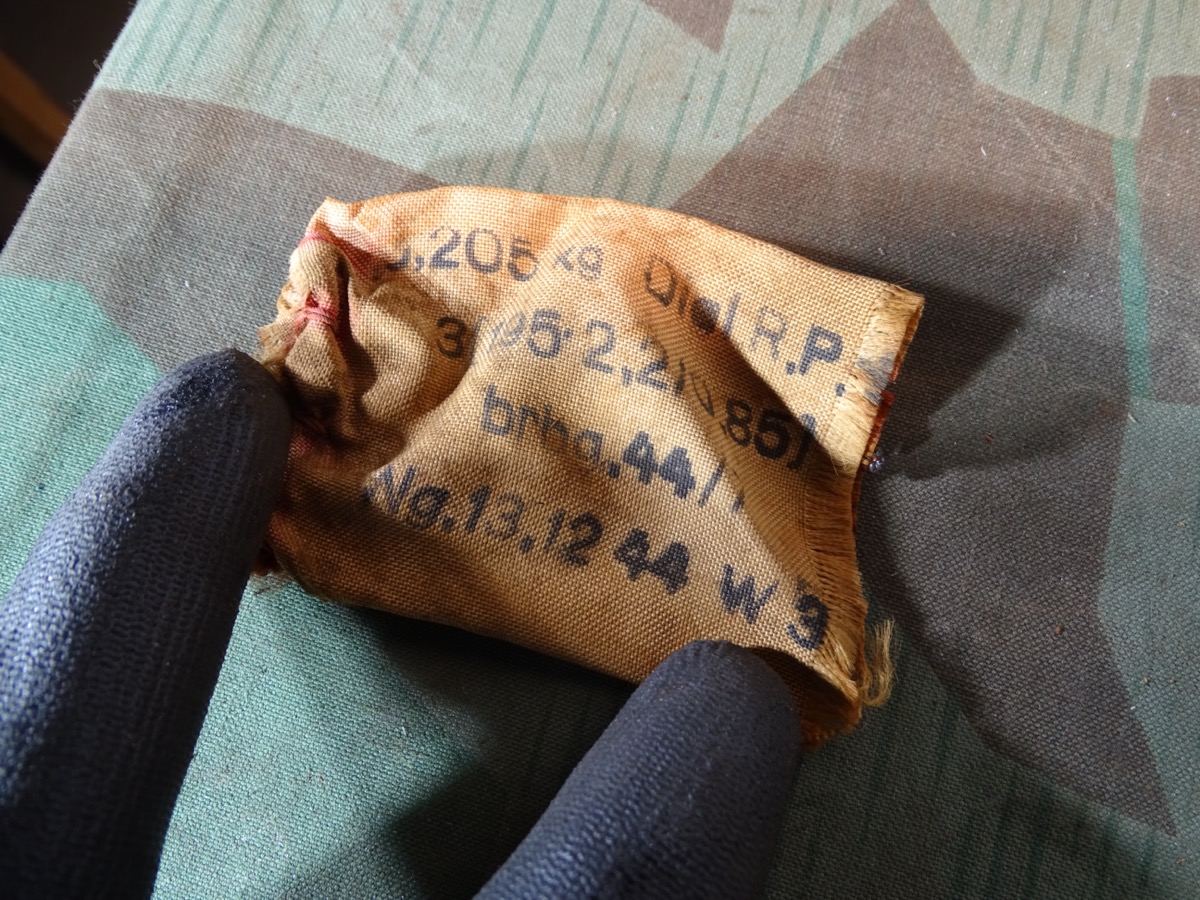 Ladungssäckchen aus der Hülse mit Datum 13.12.1944