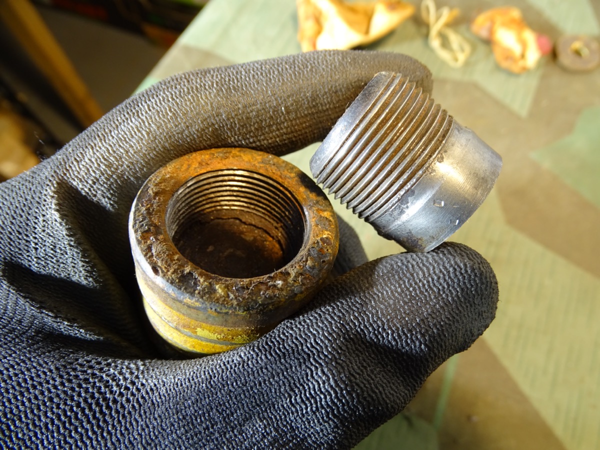 Anbei der Pappe Dichtungsring des Zünders in dem die Sprengkapsel saß.