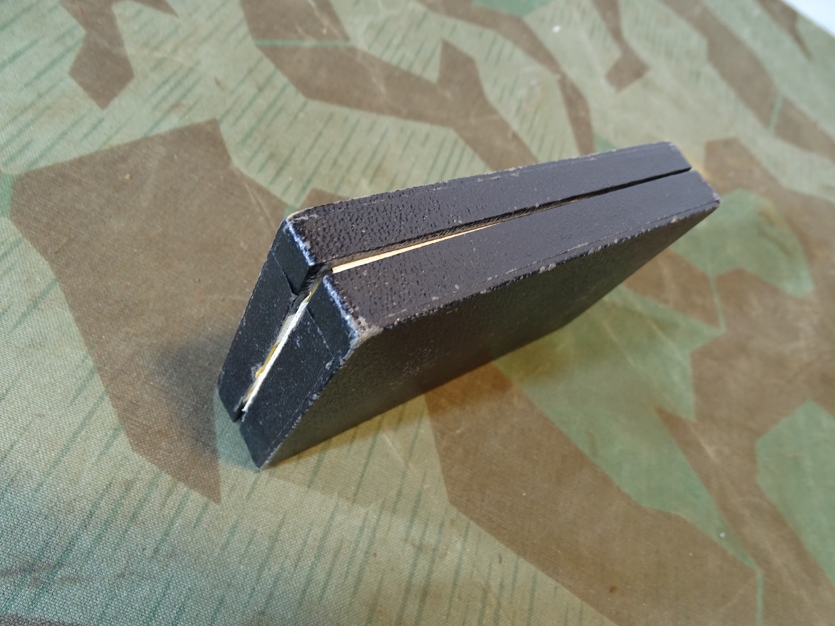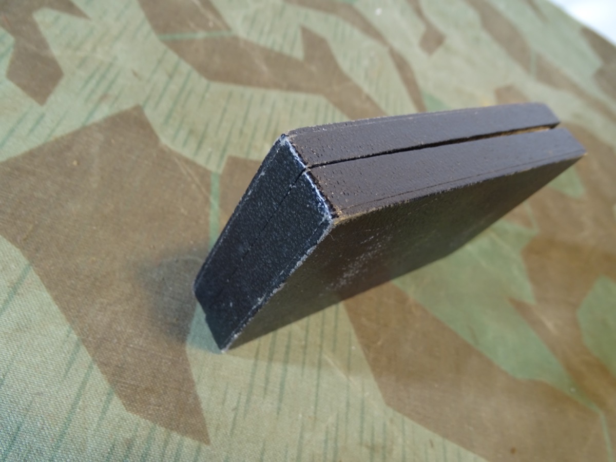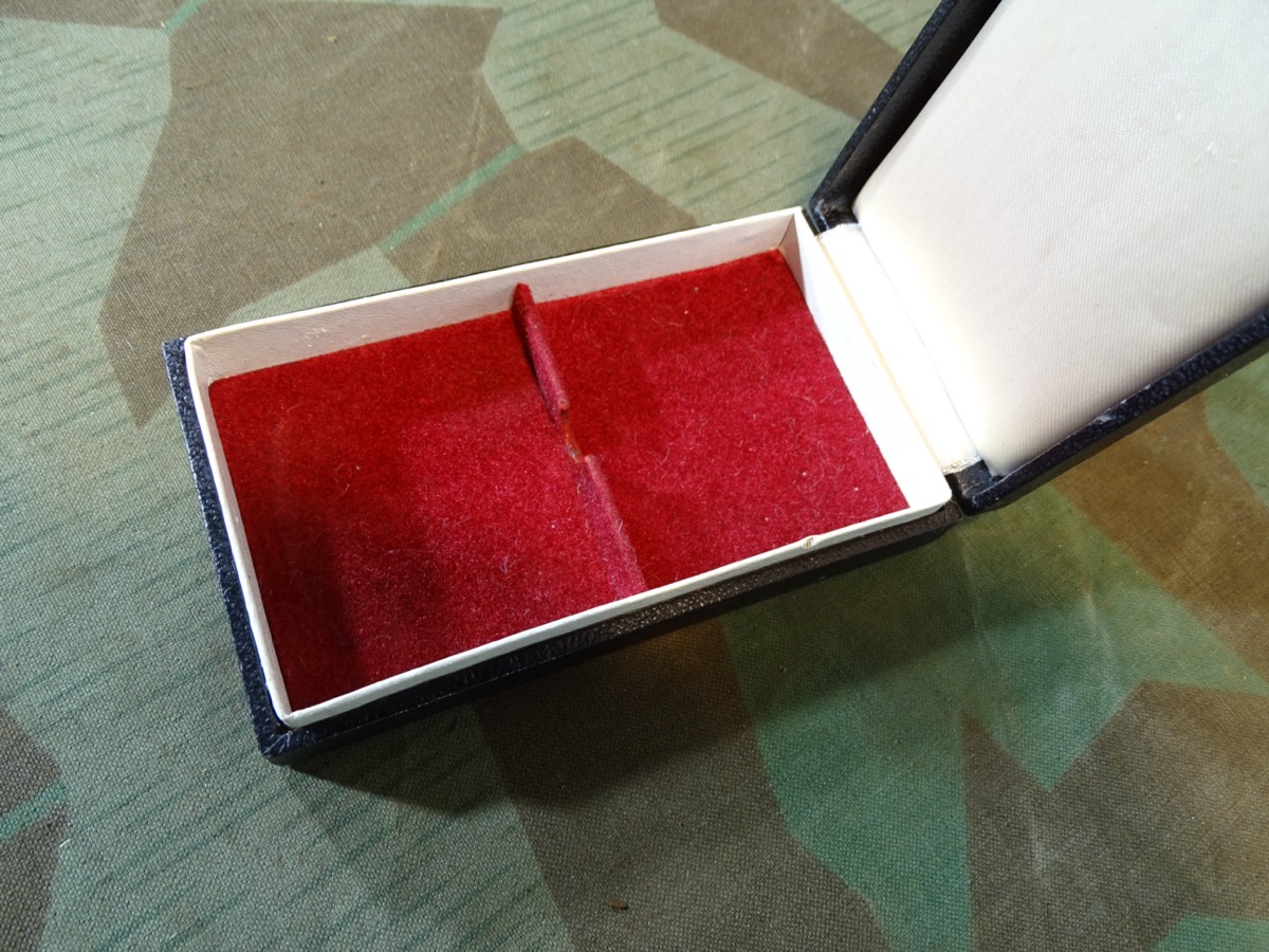Vorderes Fach innen ca. 6 cm T x 5,8 cm B, hinteres Fach ca. 5 cm Tief. Außen ca. 6,5x11,5x2,1 cm Zustand siehe Fotos. Alter und Zuordnung zu einem Orden uns unbekannt. Gut zur Dekorativen Aufbewahrung von Orden zu verwenden, die von den Abmessungen rein passen.