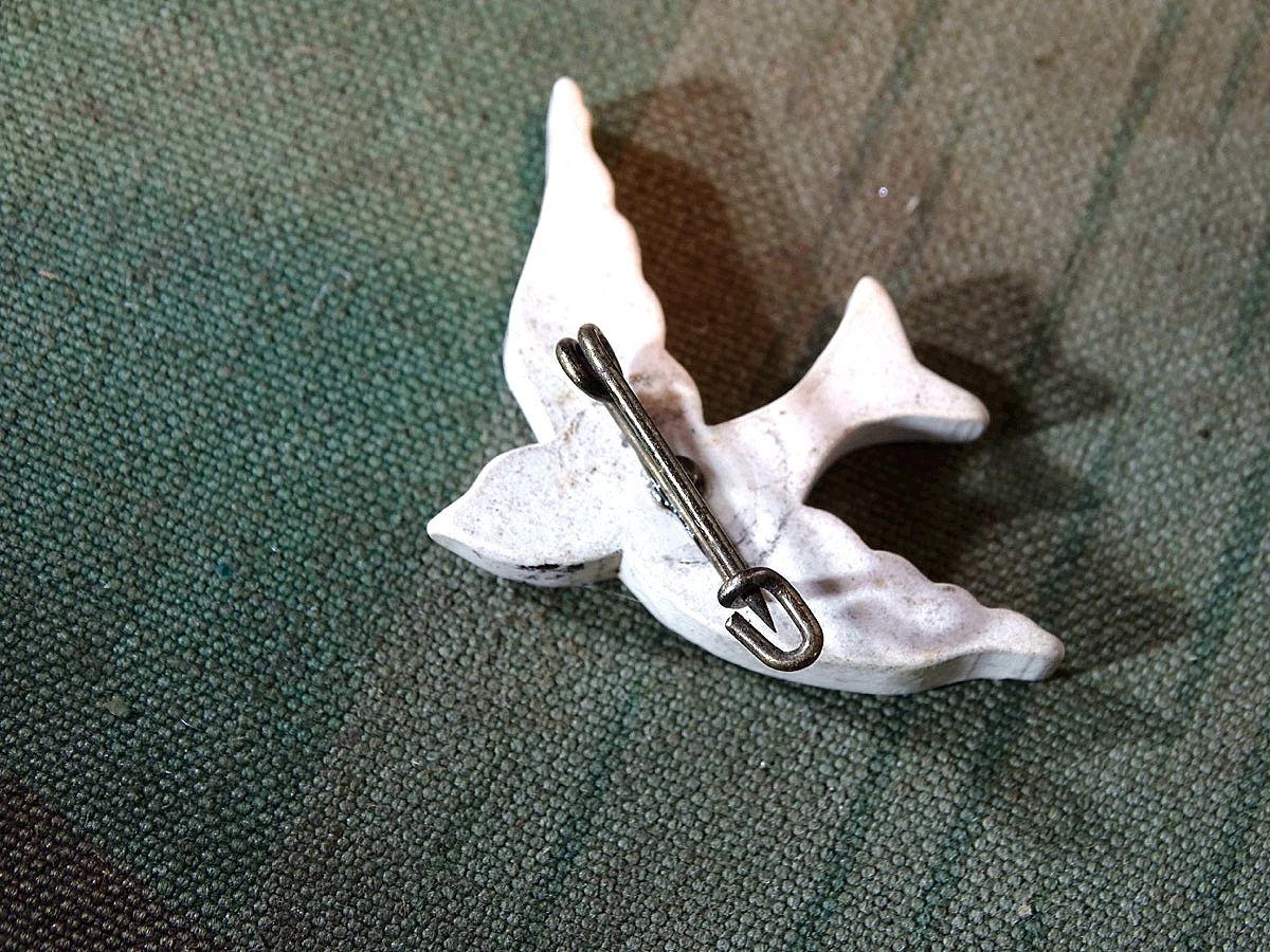 WHW Porzellanabzeichen, Schwalbe mit Nadelsystem.