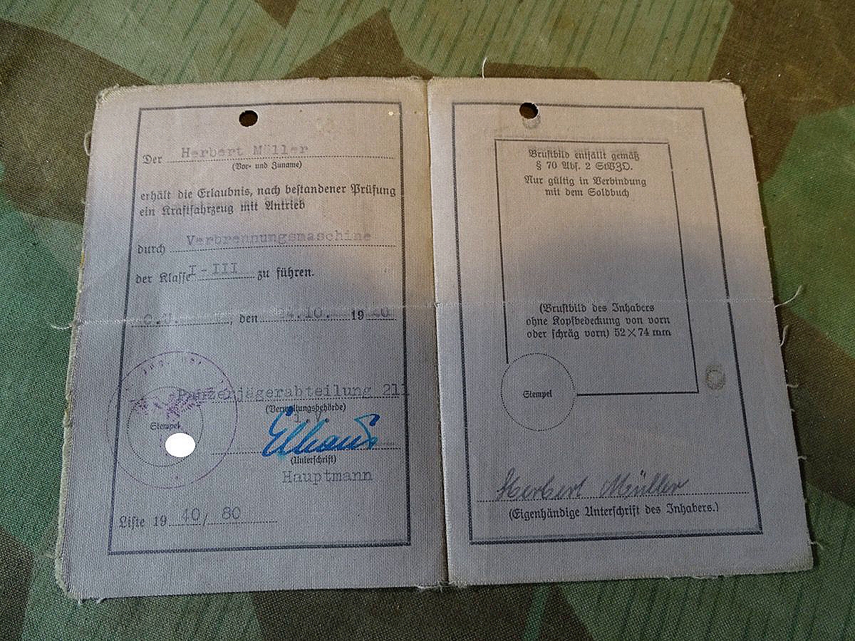 Wehrmacht Führerschein 1940, H.Müller aus Hermesdorf, Panzerjägerabt. 211