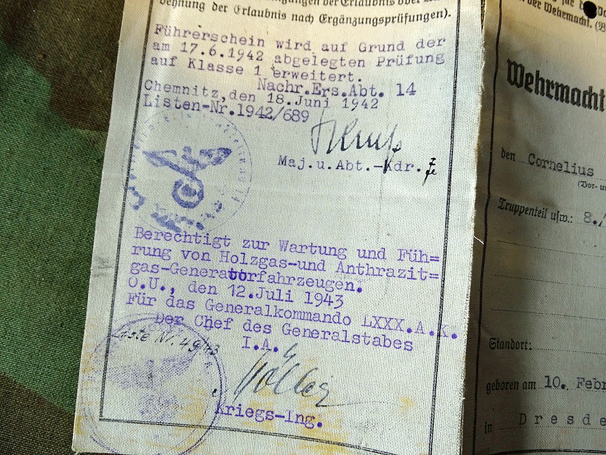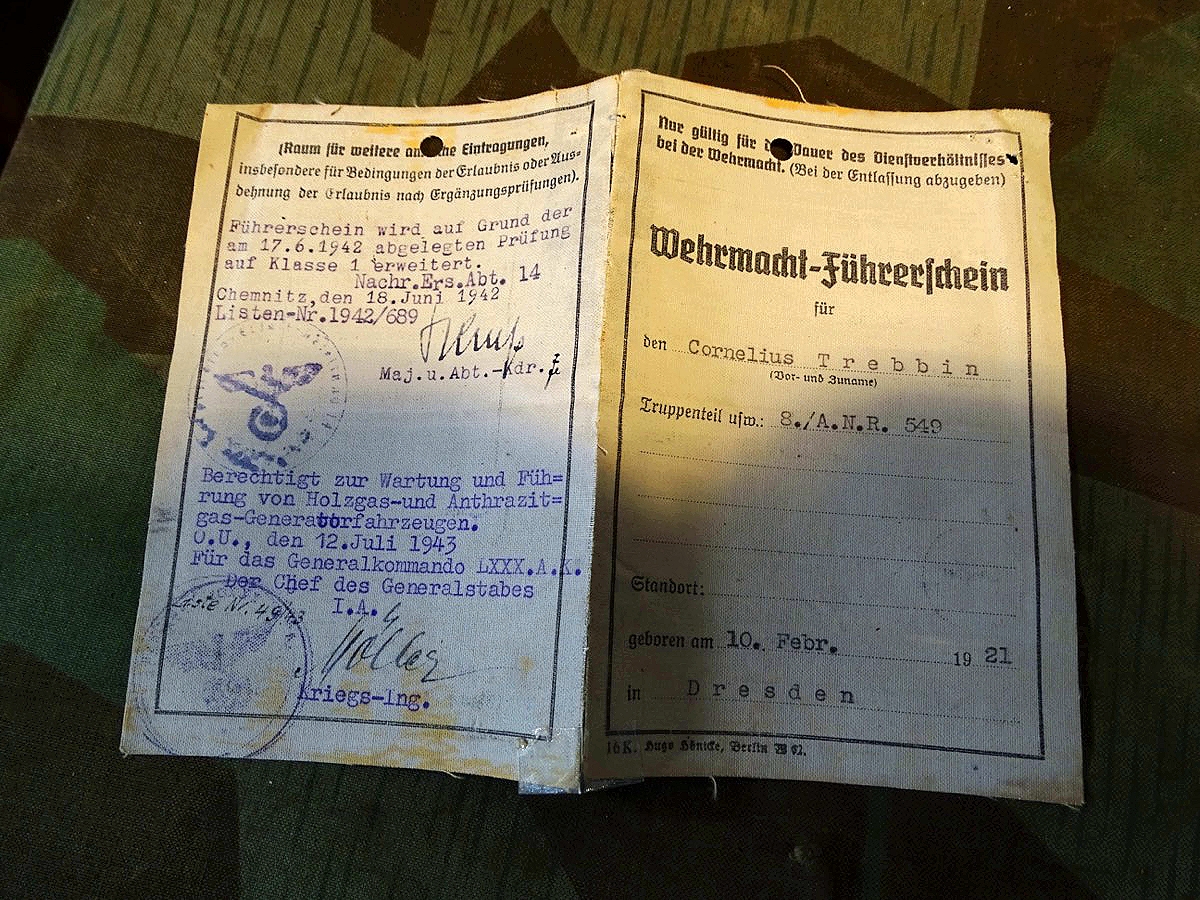 Wehrmacht Führerschein 1941, C.Trebbin aus Dresden, 3. Art. Nachr. Rgt. 549, Generator KFZ