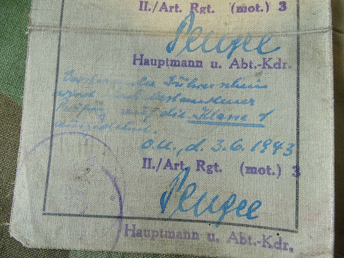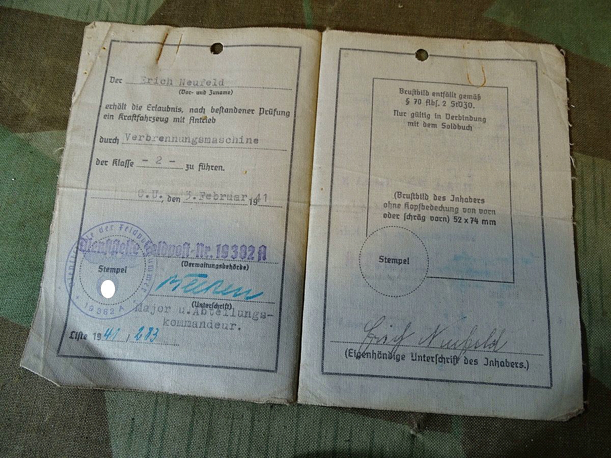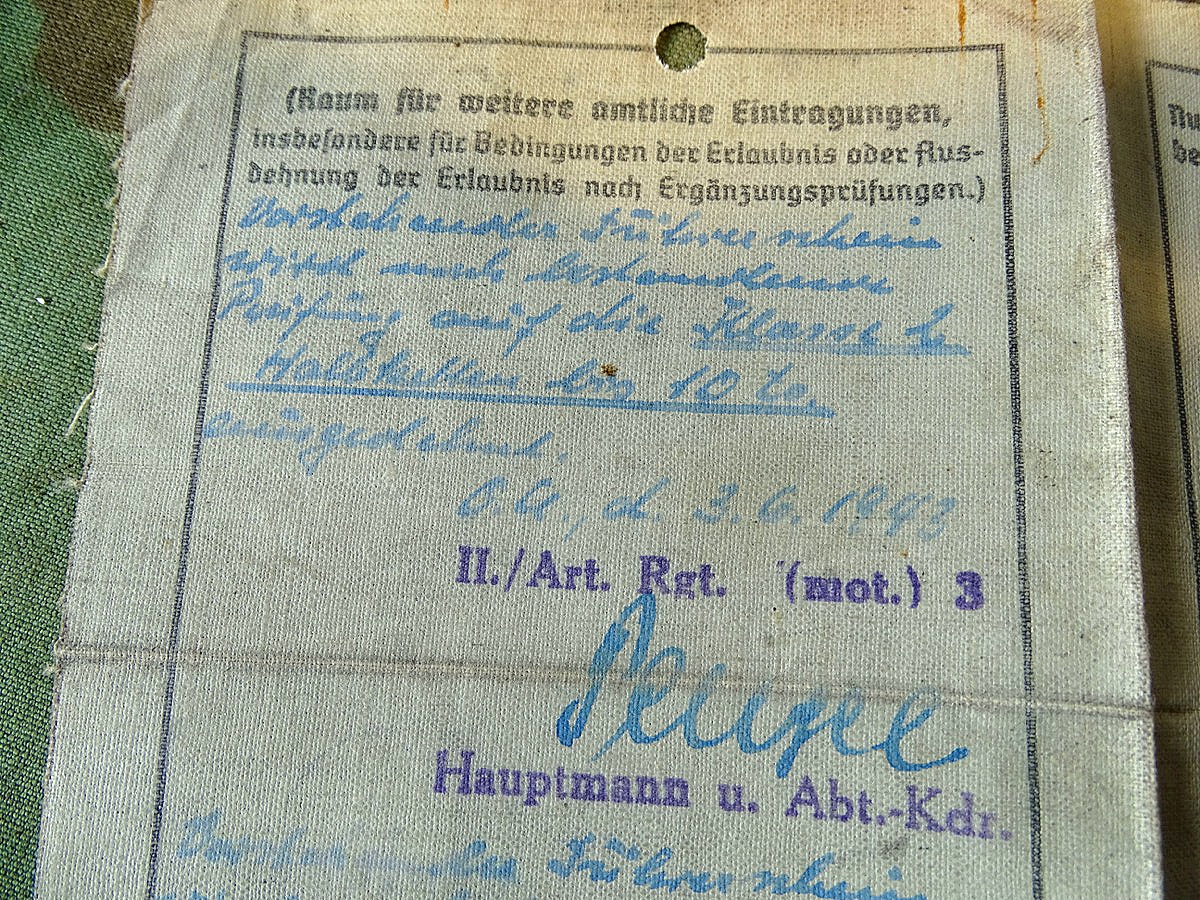 Produktinformationen "Wehrmacht Führerschein, E.Heufeldt aus Droniki, Halbkette bis 10 To, 2. Art. Rgt. ( mot) 3"