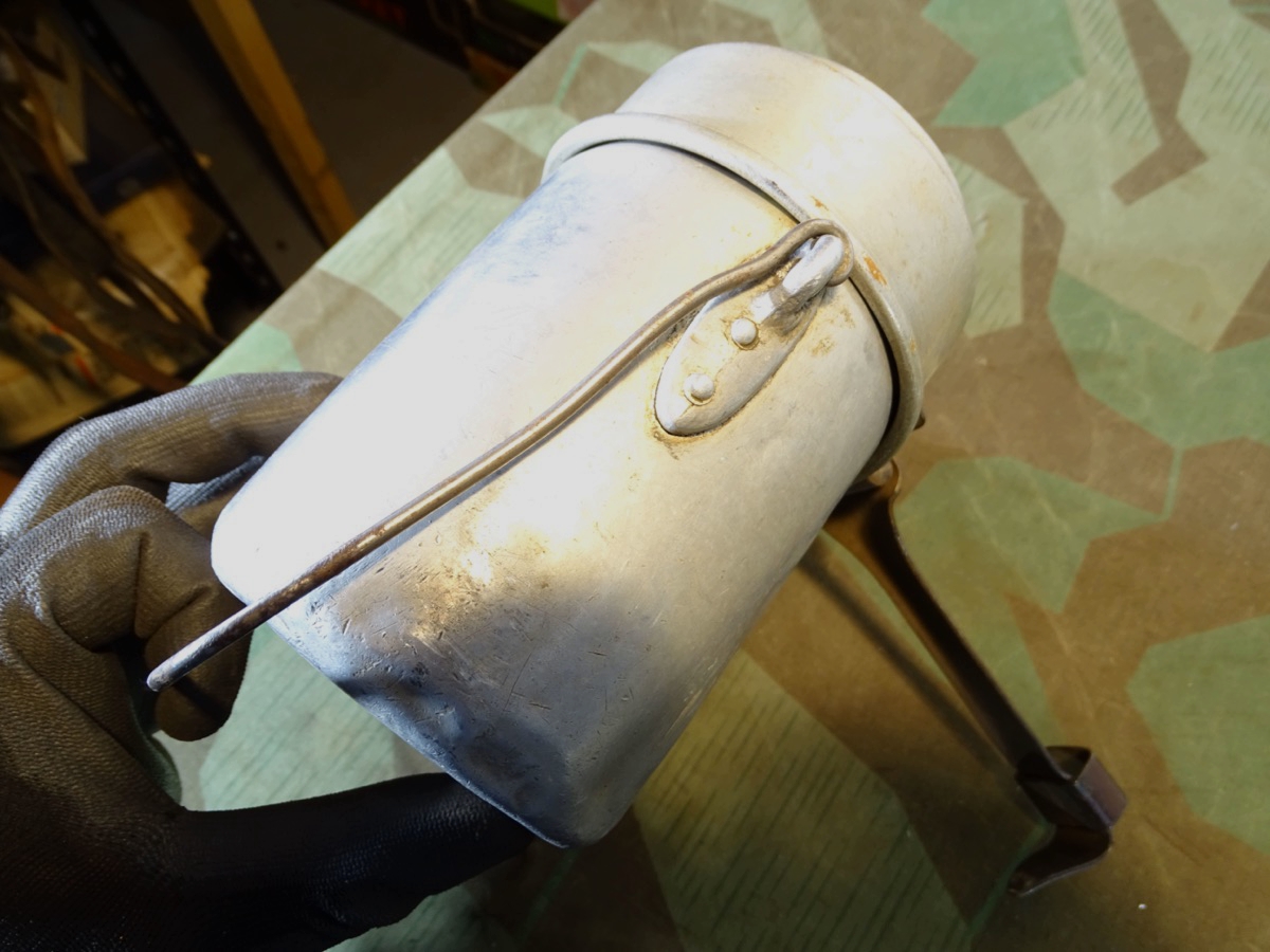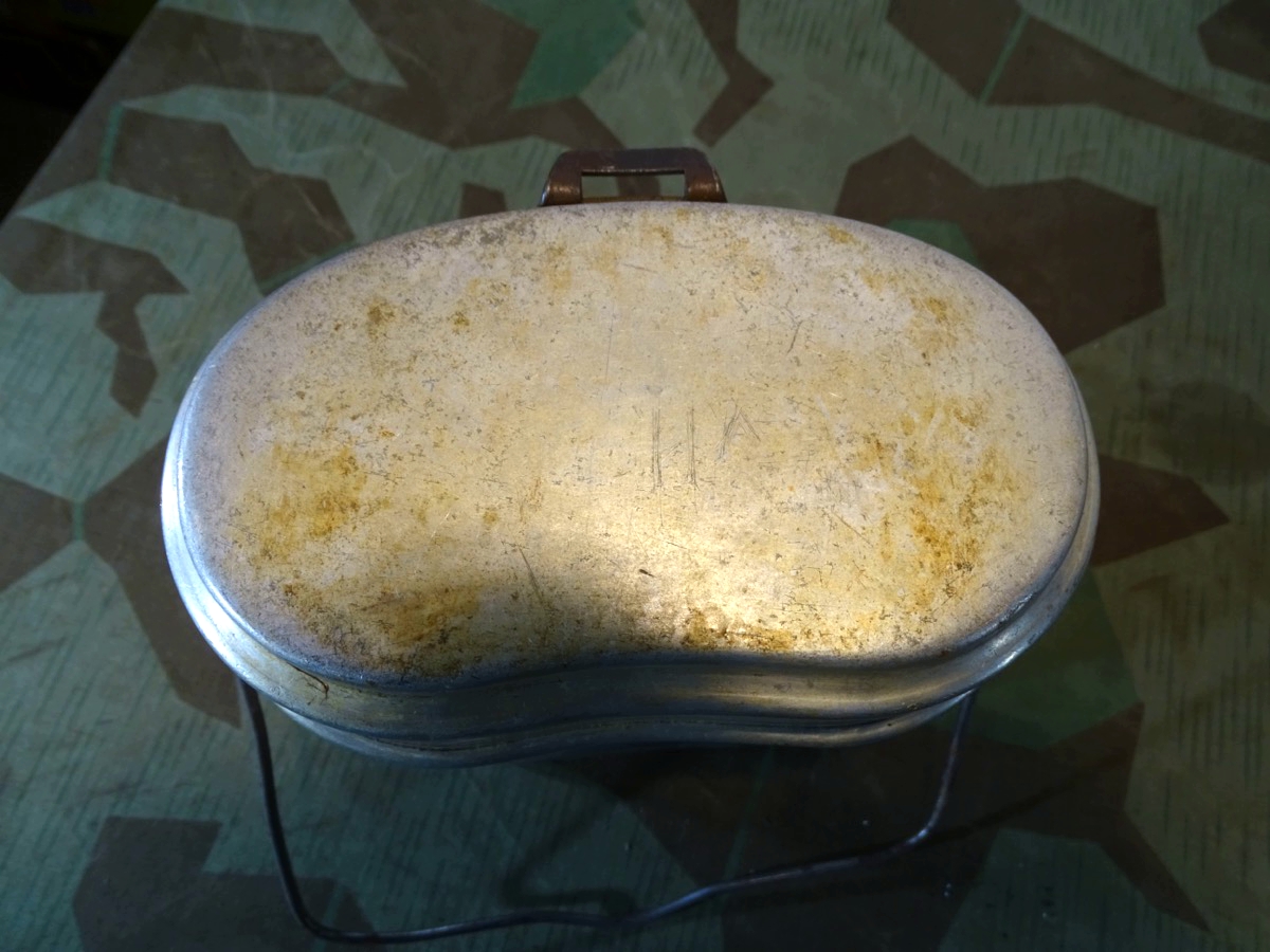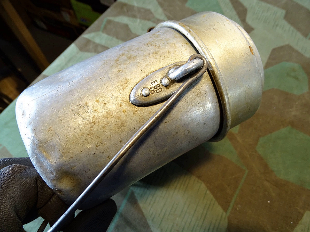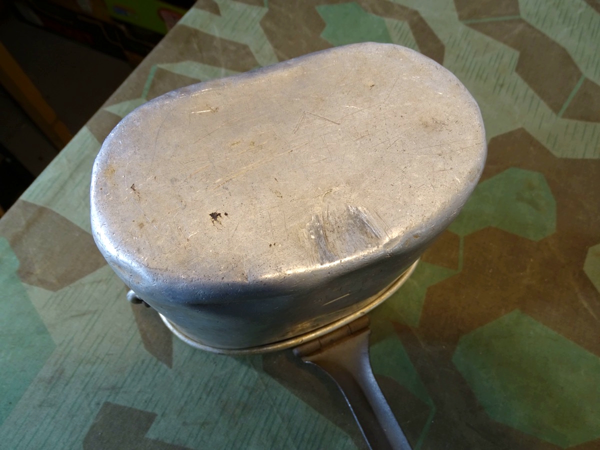 Wehrmacht Kochgeschirr, Komplett von 1942. Unten ESB 42, Deckel RFI 1942 für R. Fissler Idar Oberstein ( Schnellkochtopf)