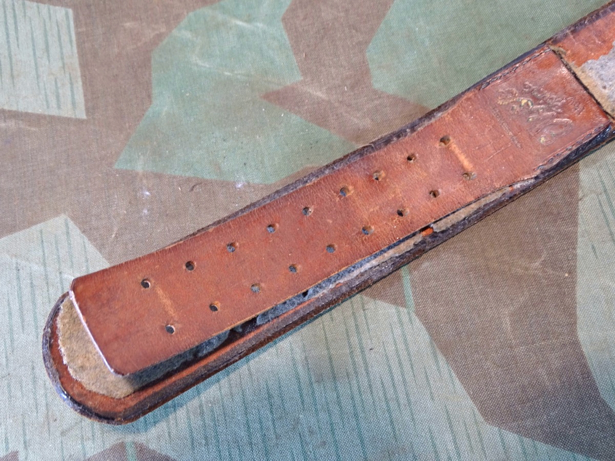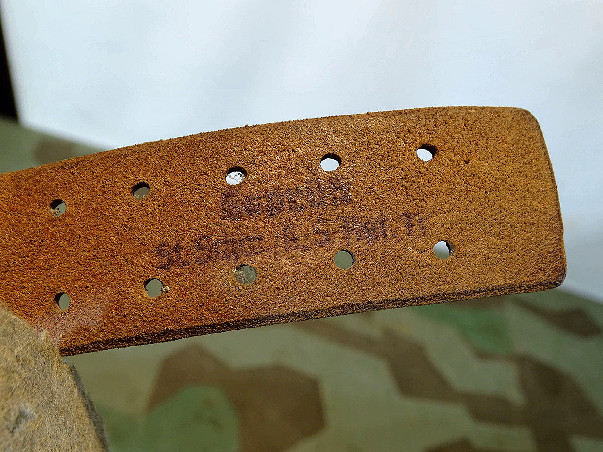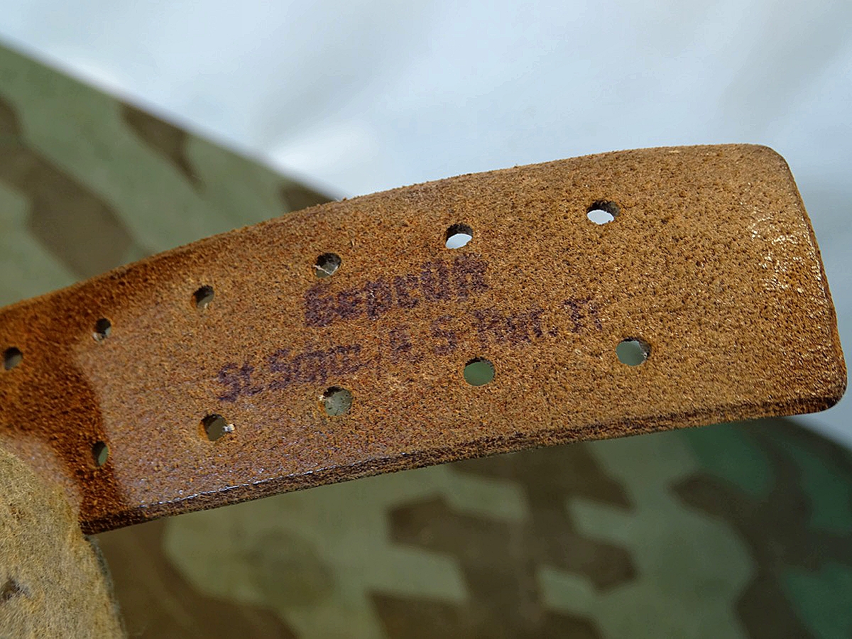 Auf Lochlasche mit Herstellermarke, Innen mit schwach leserlichem Truppenstempel. Leder noch gut beweglich. Der Koppel ist eine feinere Version- er war innen mal mit Filz gefüttert, dieser weitgend abgetragen. Zustand siehe Foto.