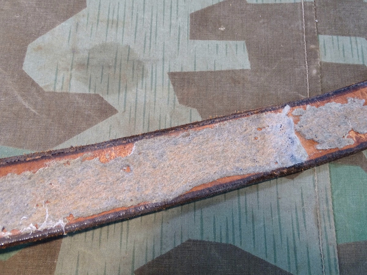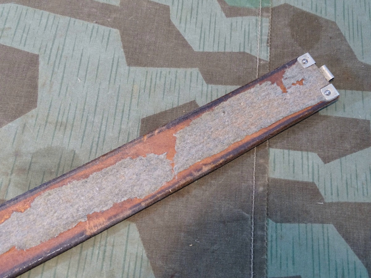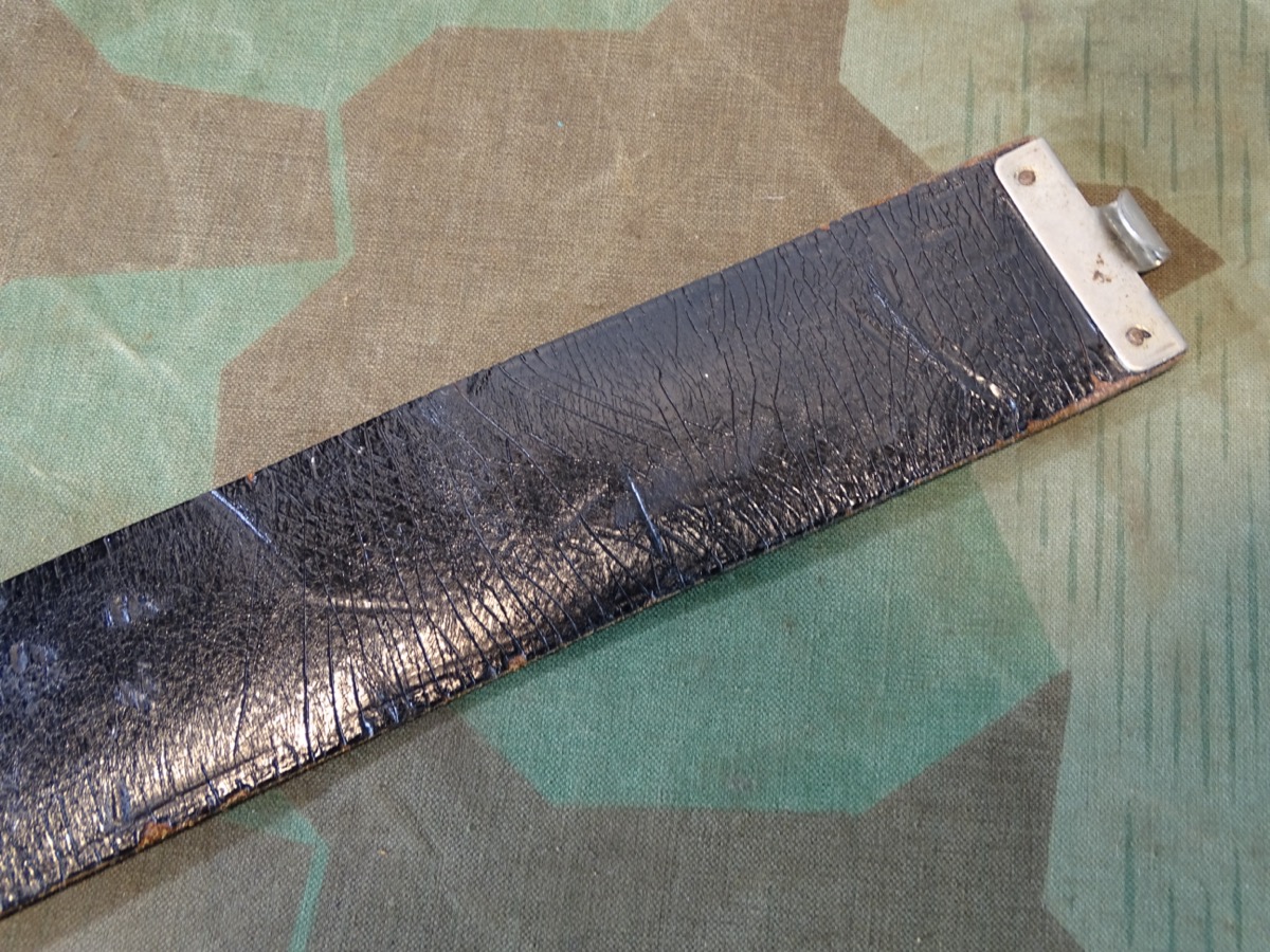 Auf Lochlasche mit Herstellermarke, Innen mit schwach leserlichem Truppenstempel. Leder noch gut beweglich. Der Koppel ist eine feinere Version- er war innen mal mit Filz gefüttert, dieser weitgend abgetragen. Zustand siehe Foto.