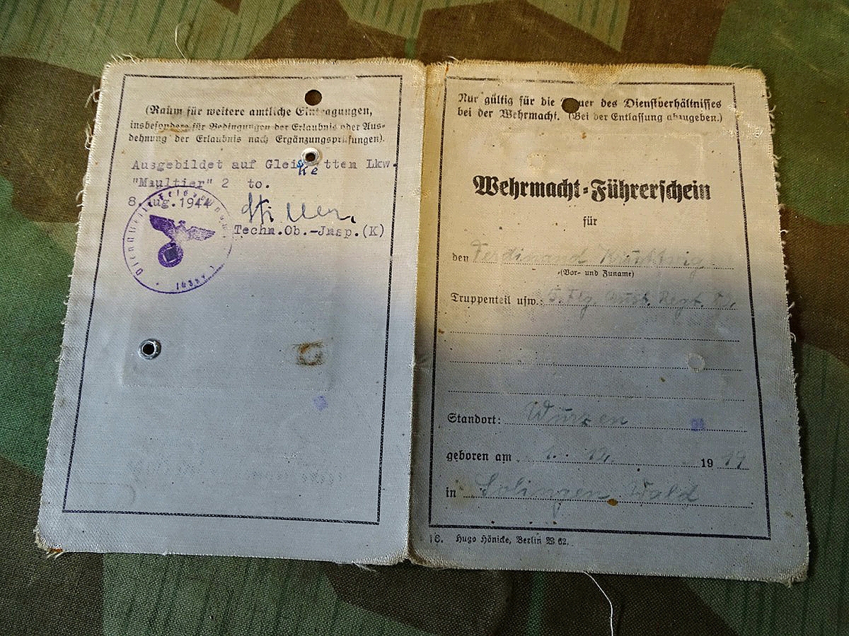 Wehrmacht Luftwaffen Führerschein 1940, F.Krutwig aus Solingen, Luftgau Kdo IV,Abt. Stokraft, Dresden , Bild, Maultier