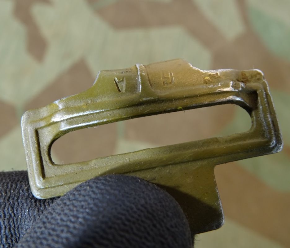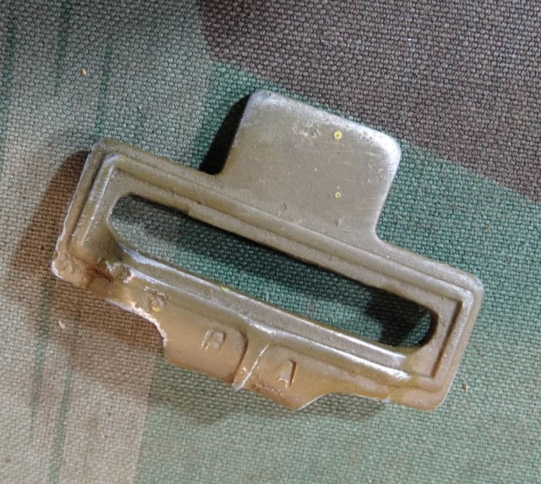 Produktinformationen "Wehrmacht, lehmgelber Gegenhaken/ Aluminiumgegenhalt für Lederkoppel , Hst: B A "