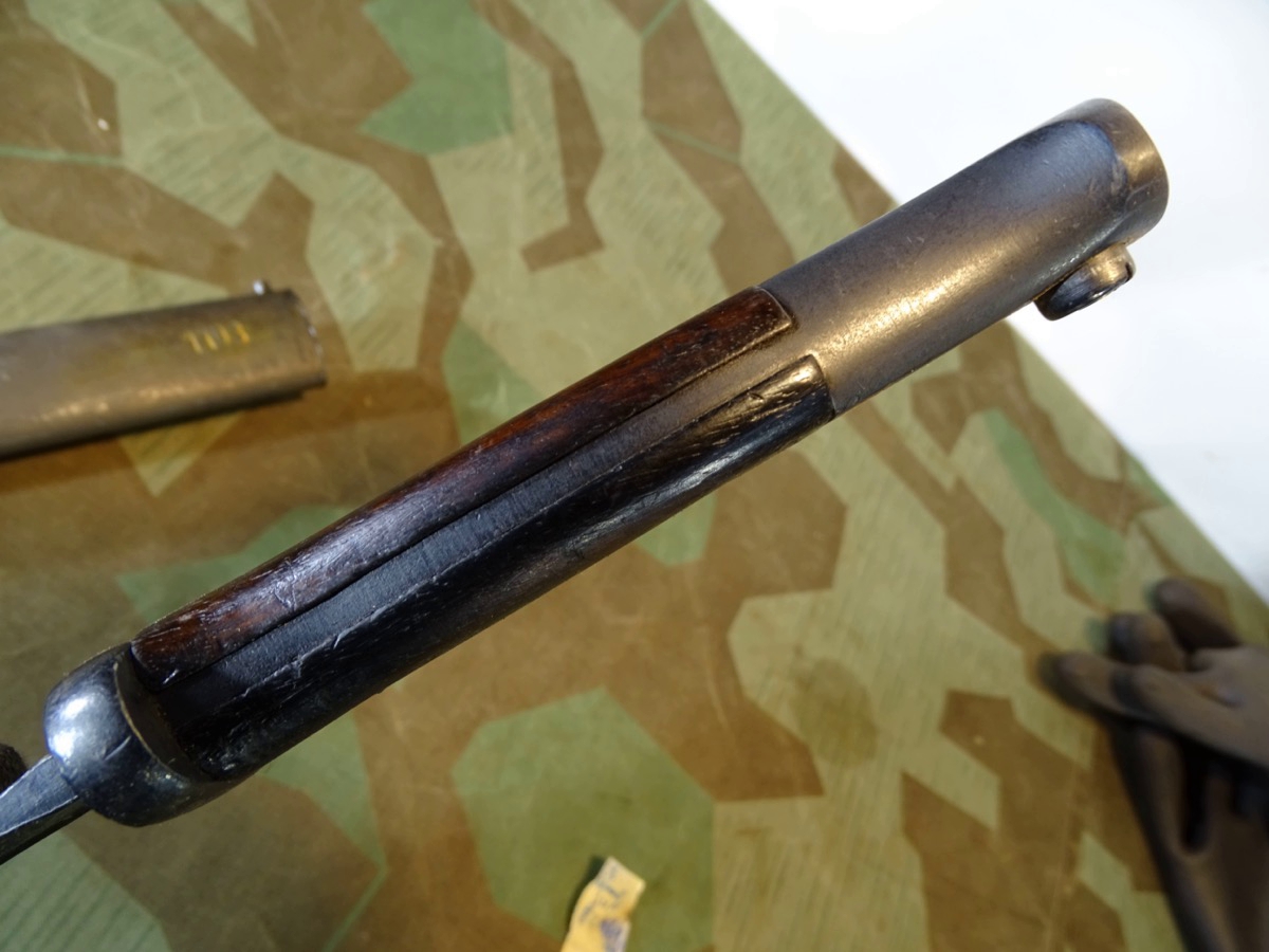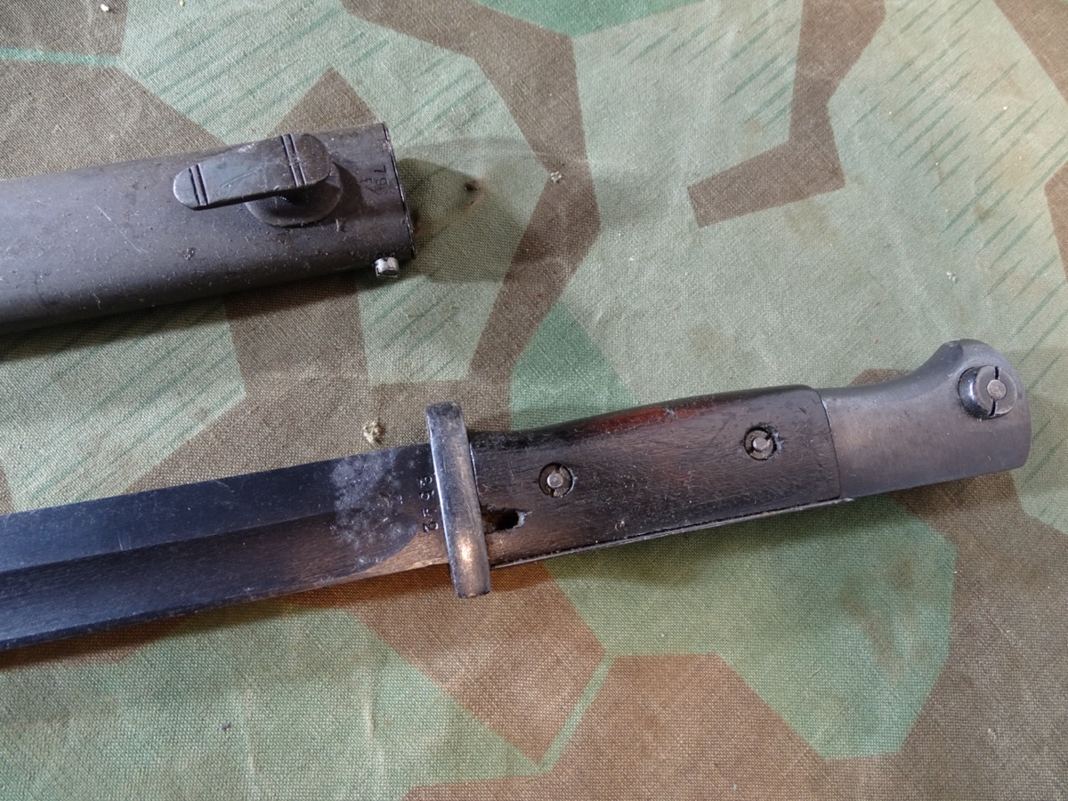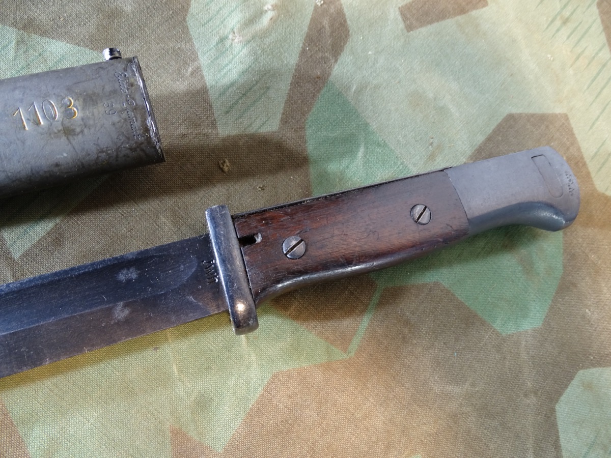 Wehrmachts K 98 Seitengewehr SG 84/98 mit Holz Griffschalen, Hst.: jwh 43 staatl. Waffenfabrik Chatellerault , Scheide Elite Diamant