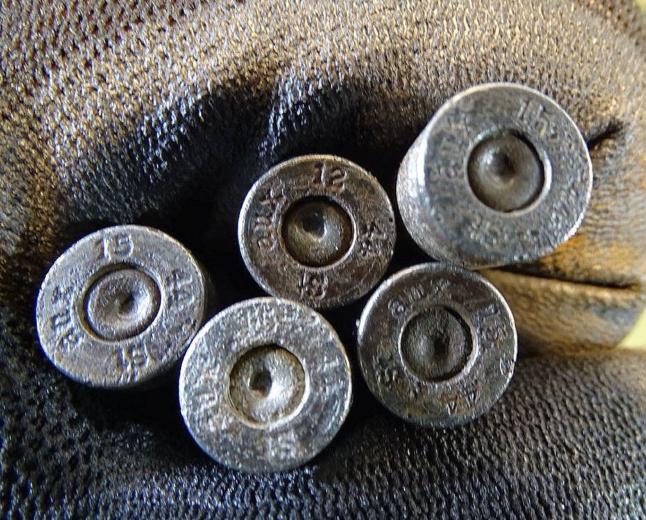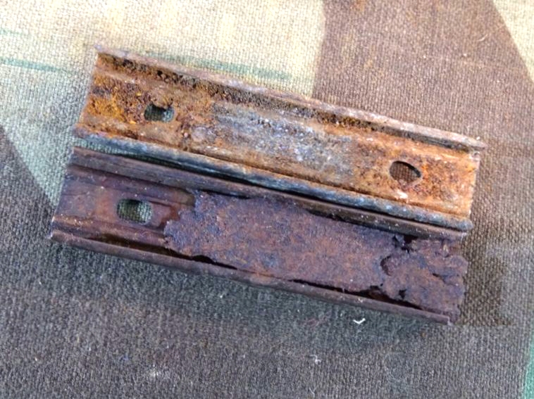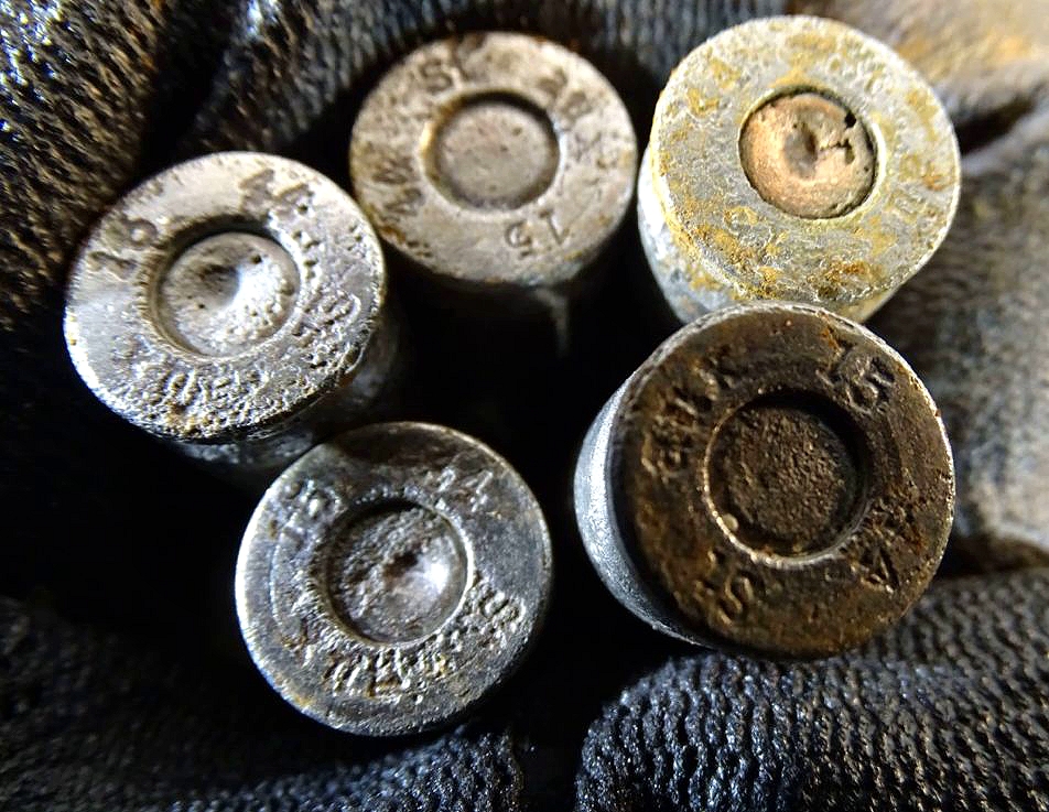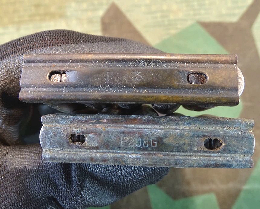 Gereinigte Stahlhülsen. Hersteller nicht alle klar zu erkennen, die meisten oder wahrscheinlich sogar alle aber vom Herstellercode aux von 1944. ( Herstellercode vom Polte Werk Magdeburg von 1944). Frühe Buntmetall Ladestreifen aus dem 2. Weltkrieg mit früher Herstellerkennzeichnung P 208. Die inneren Federn teils weggerostet. Gesetzeskonform, frei erwerbbar ab 18 Jahre. Kein Versand ins Ausland. NO SHIPPING TO FOREIGN COUNTRYS!! So im 2. Weltkrieg verwendet. Frei von zündfähigem Material, kpl.delaboriert. Bei Bestellung bitte Altersnachweis senden oder mailen ( Kopie vom Personalausweis). Zündhütchen abgeschlagen. Zustand siehe Fotos