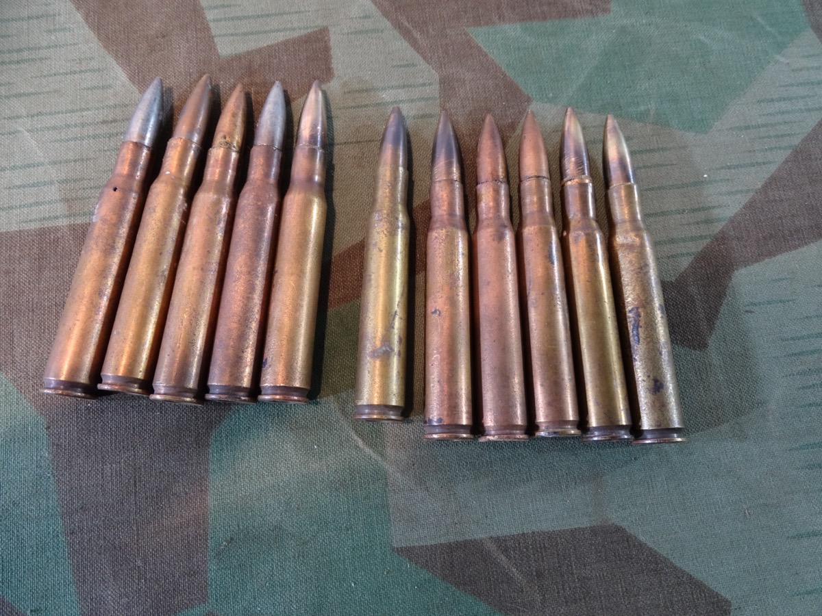 Kein Versand ins Ausland, NO SHIPPING TO FOREIGN COUNTRYS. Originalmunition 7,62X 63 der US Truppen im 2. Weltkrieg. Verwendet z.B, für den US M 1 Garant Karabiner und das MG cal. 30. Alle vom gleichen Hersteller. Zustand siehe Fotos. Buntmetall. Gestempelt auf Bodenplatte mit "FA 40 und 42 " für Hersteller Frankford Arsenal - Philadelphia, Pennsylvania. USA und 1940 und 42. Komplett delaboriert und frei von jeglichem zündfähigen Material. Zündhütchen abgeschlagen. Bei Bestellung bitte Altersnachweis mailen oder senden (Kopie vom Personalausweis)