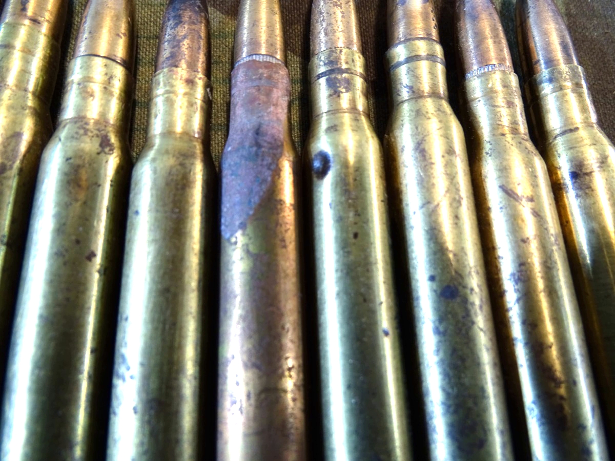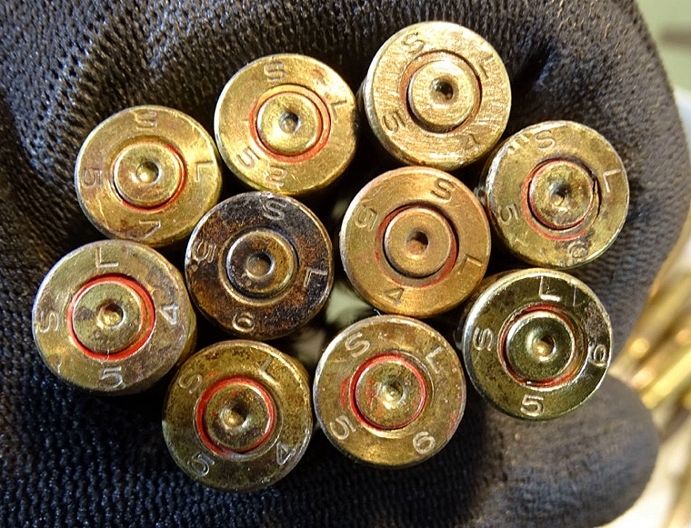 Kein Versand ins Ausland, NO SHIPPING TO FOREIGN COUNTRYS. Aus der Zeit des Koreakrieges 1950-53 und der Zeit des Vietrnamkrieges 1955-75 Originalmunition der US Truppen aus der Zeit kurz nach dem 2. Weltkrieg. Alle vom gleichen Hersteller. Zustand siehe Fotos. Buntmetall. Gestempelt auf Bodenplatte mit SL für Hersteller St. Louis Ordnance Plant, St. Louis Missoiri, USA und folgenden Jahren : 2x1952, 5x1954, 6x1956, 6x1957. Komplett delaboriert und frei von jeglichem zündfähigen Material. Zündhütchen abgeschlagen. Bei Bestellung bitte Altersnachweis mailen oder senden (Kopie vom Personalausweis)