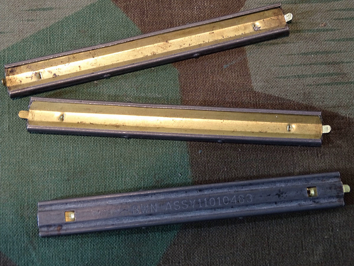 guter Zustand. Nutzbar zum Befüllen der Magazine der Patrone 5,56 × 45 mm - zivile Bezeichnung .223 Remington. Das Kaliber 5,56 × 45 mm NATO war die erste Patrone dieser Art, die in großem Umfang militärisch eingeführt wurde. Da die Patrone 5,56 × 45 mm NATO einige Vorteile besitzt, wie z.B. einen vor allem reduzierten Rückstoß und in dem geringeren Gewicht pro Patrone, was dem bewaffneten Soldaten erlaubt, mehr Munition am Mann zu führen. Seit 1980 ist diese Patrone NATO-Standard (STANAG 4172). Die Ladestreifen (Clip) aus Metall passen für zahlreiche verschiedene Patronen 5,56 × 45 mm NATO (.223 Remington) passend für M16, Sig 500 Serie, Kal. .223. Die Ladestreifen sind „BWN ASSY 11010483“ gestempelt. Passen auch Z.B. für