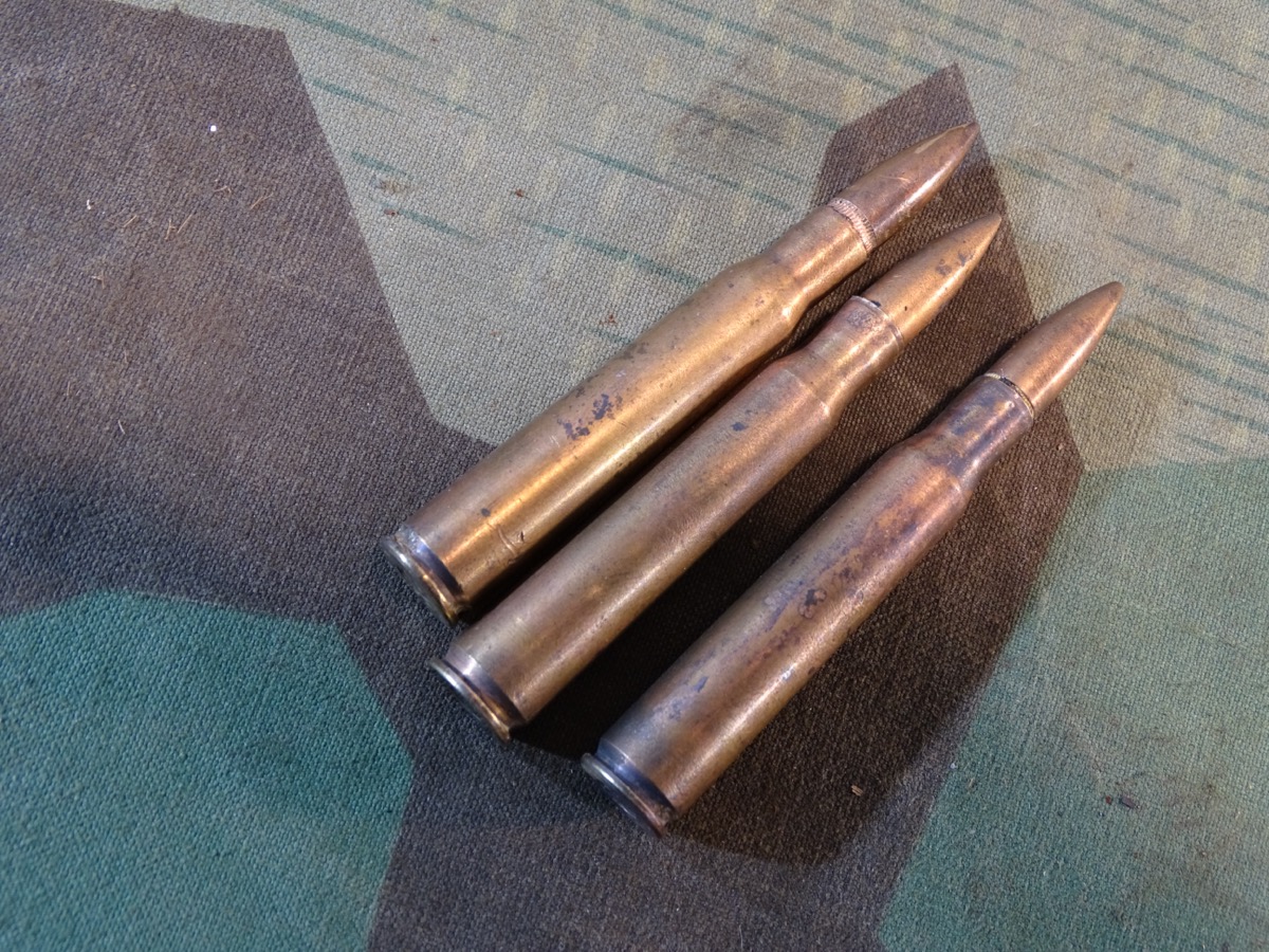 3 Stück US Deko Patronen 2. Weltkrieg, cal. 30-06, alle SL 42, (St. Luis Ordonance Plant 1942 )