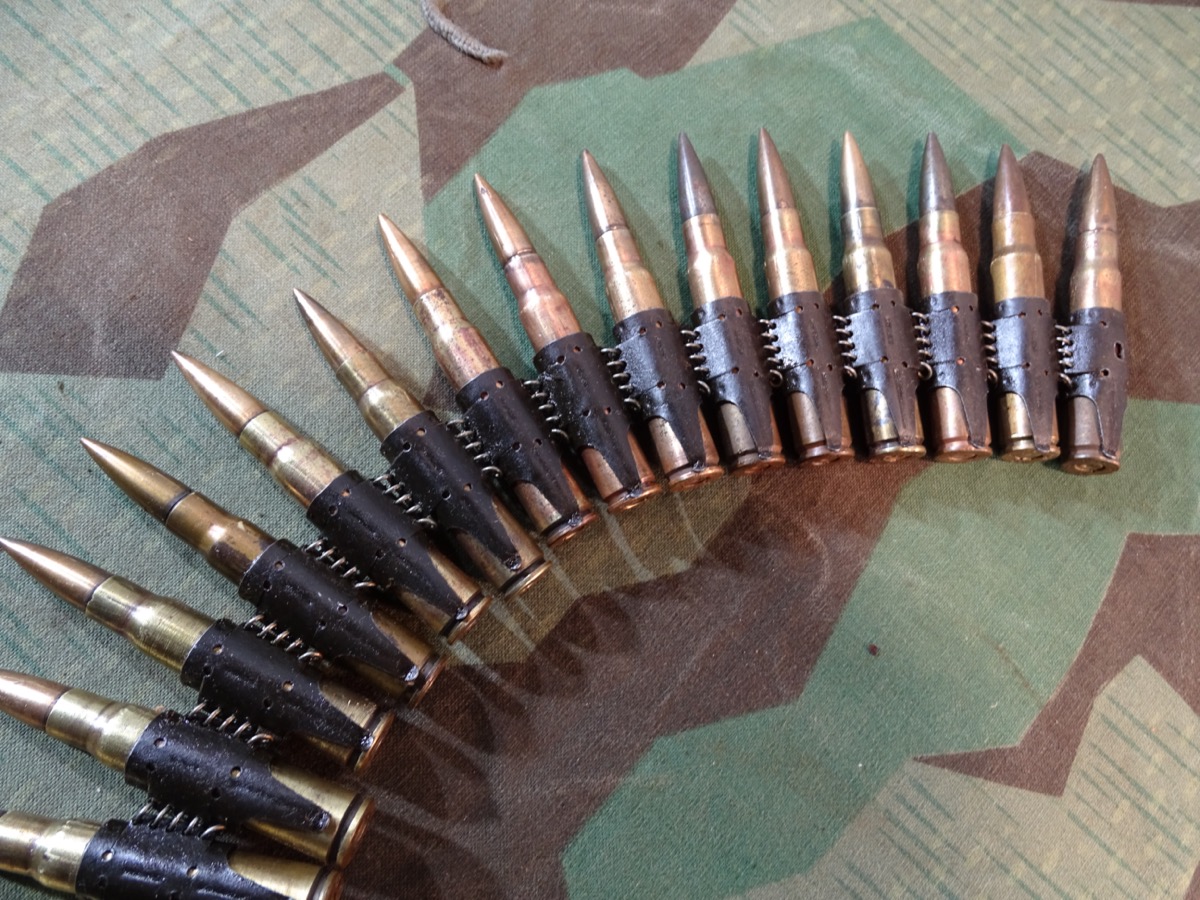 50 Stück Wehrmachts Deko Messing Patronen mit 1 Patronengurt cvo ( Stocko Wuppertal )