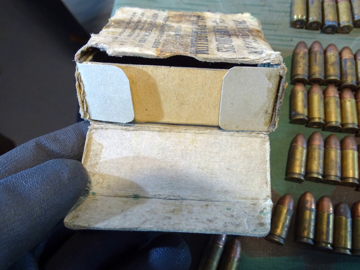 60 Deko Patronen mit Originalschachtel, 2. Weltkrieg, US Army/ Kanada, Grease Gun, 9 mm High Power/ 9 mm FN 1935