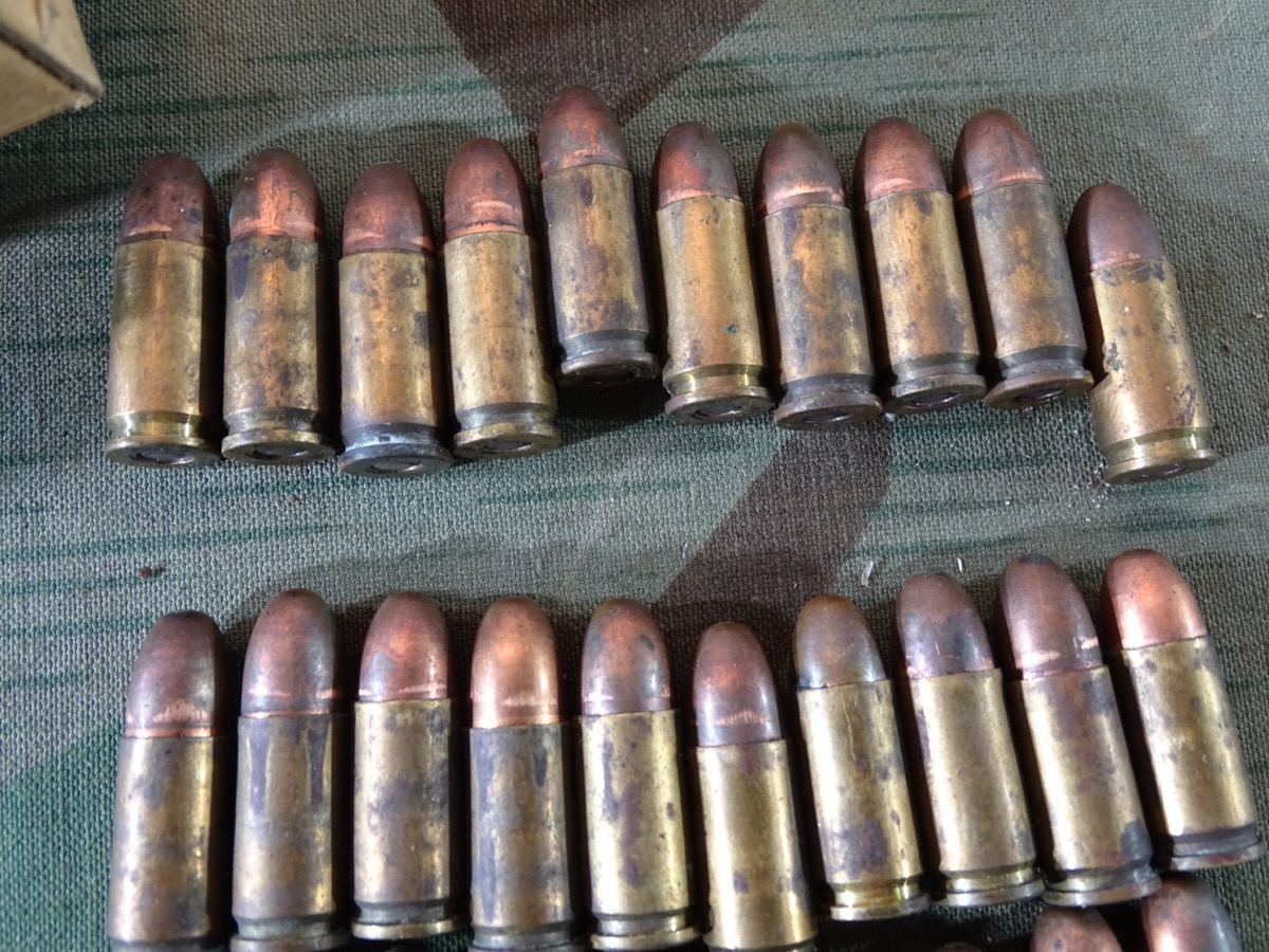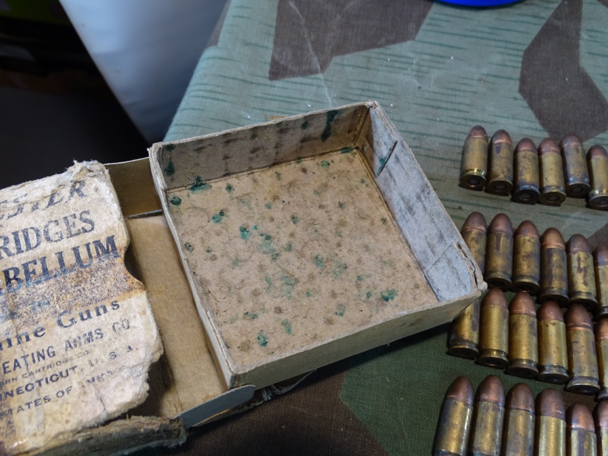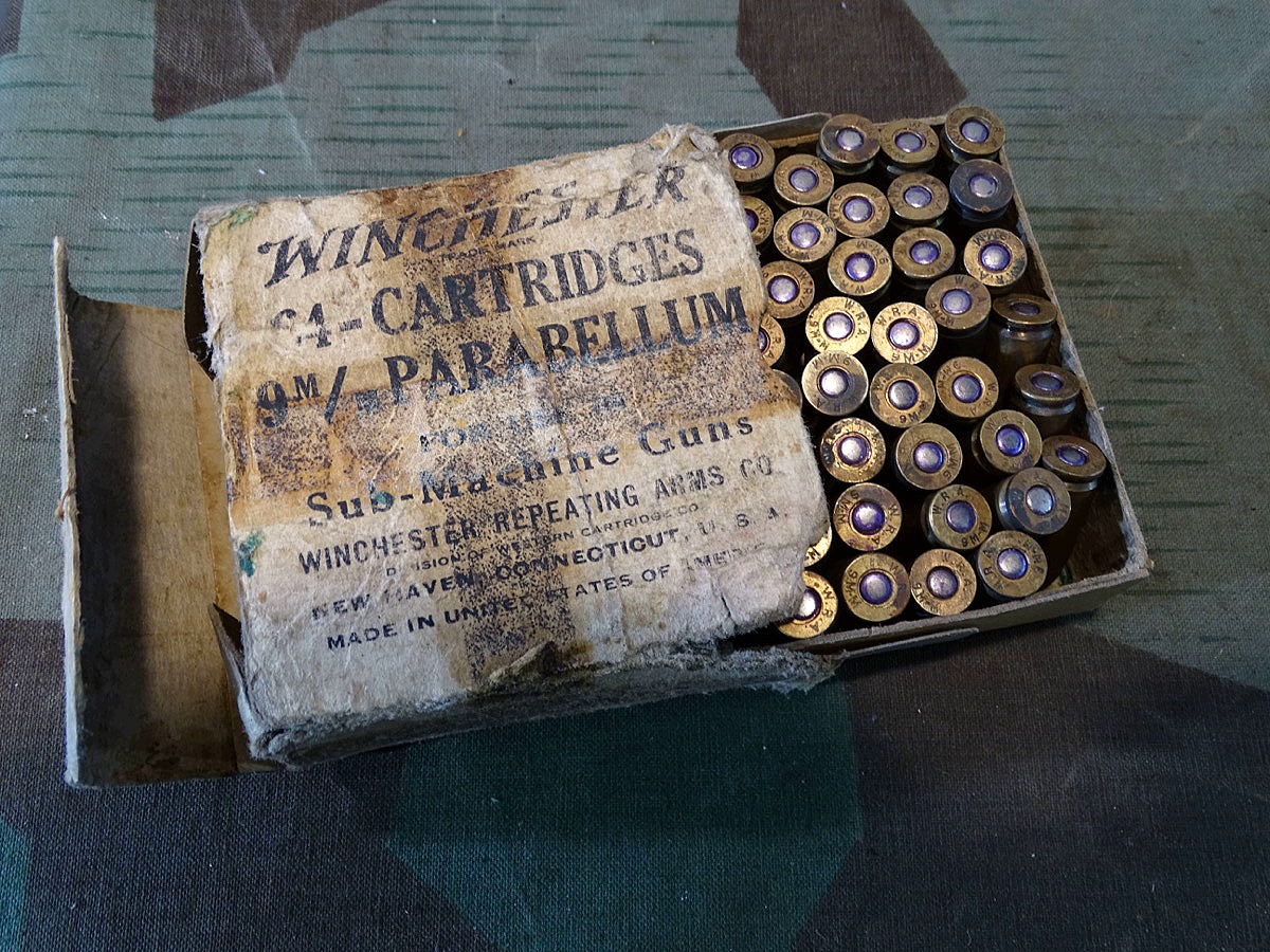 Produktinformationen "60 Deko Patronen mit Originalschachtel, 2. Weltkrieg, US Army/ Kanada, Grease Gun, 9 mm High Power/ 9 mm FN 1935"