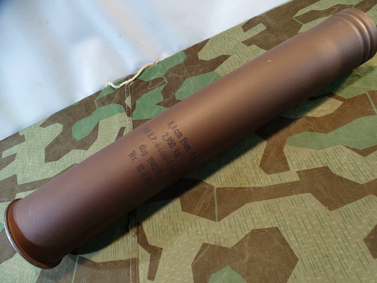 NO SHIPPING TO FOREIGN COUNTRYS!! Kein Auslandsversand. Original Hülse der berühmten deutschen Wehrmachts 8,8 cm Flak 18, die auch im Erdkampf gegen Panzer ein gefürchteter Gegner war. Die Hülse ist glattes, gut erhaltenes Metall. Keine oder nur sehr leichte Narben. Nicht gespachtelt ! Bodenstemplungen wie Adler, Herstellercode, Jahr und 8,8 cm Flak 18 lesbar. Stammt aus einem Museumsbestand. Lack und Beschriftung sind originalgetreu - aber unserer Meinung nach mal irgendwann erneuert worden, wahrscheinlich von den Museumsrestauratoren. - gut gemacht. In dieser Qualität selten zu bekommen. Komplett frei von gefährlichen Stoffen - reiner Dekorationsgegenstand, komplett delaboriert/ deaktiviert. Bei Bestellung bitte Altersnachweis senden oder mailen ( Kopie vom Personalausweis).Das Foto steht stellvertretend für unseren Bestand an gleichwertigen Artikeln gleichen Zustands. Mehrere bei Bestellung vorrätig. Es kann daher bei Lieferung zu Abweichungen zum Foto kommen