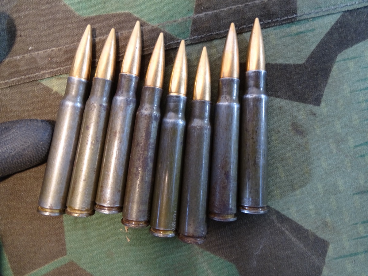 8 Stück Wehrmachts Deko Patronen 8x57, Stahlhülsen, hhw 43