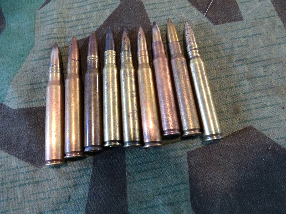 9 Stück US Deko Patronen cal. 30-06, 40-50er Jahre, alle SL (St. Louis Ordnance Plant)
