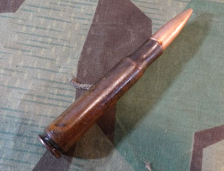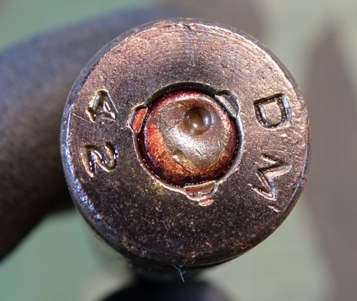 Kein Versand ins Ausland, NO SHIPPING TO FOREIGN COUNTRYS. Buntmetall. Standartmunition im 2. Weltkrieg. Gestempelt auf Bodenplatte mit "DM 42 " für Hersteller Des Moines Ordnance Plant, Ankeny, Iowa, USA und 1942 Guter Zustand. Die Hülsen dieser Patrone liegen praktisch in jedem deutschen Wald in Reihen mit einem Abstand von ca. 50 m.