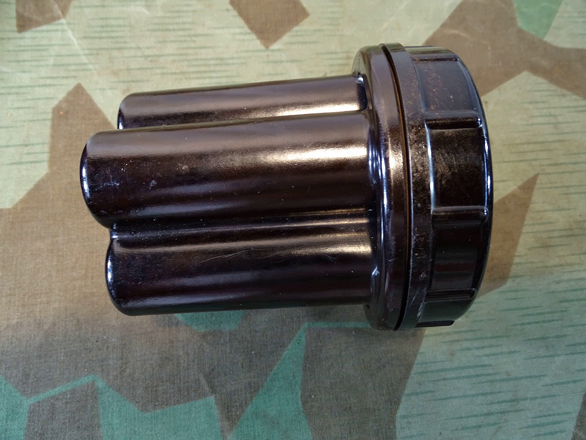 Bakelitbehälter für 6 Sternsignalpatronen der Wehrmacht mit Etikett, September 1944, boa