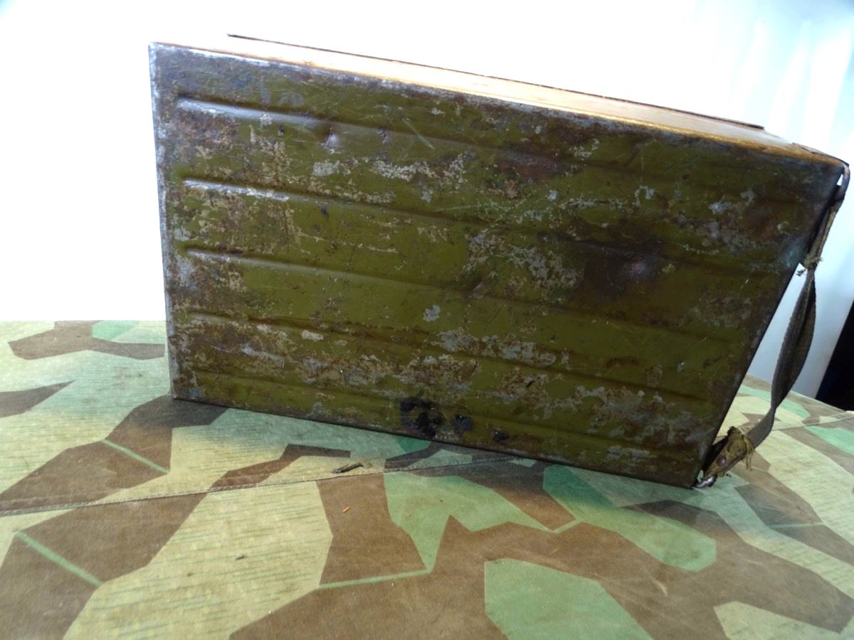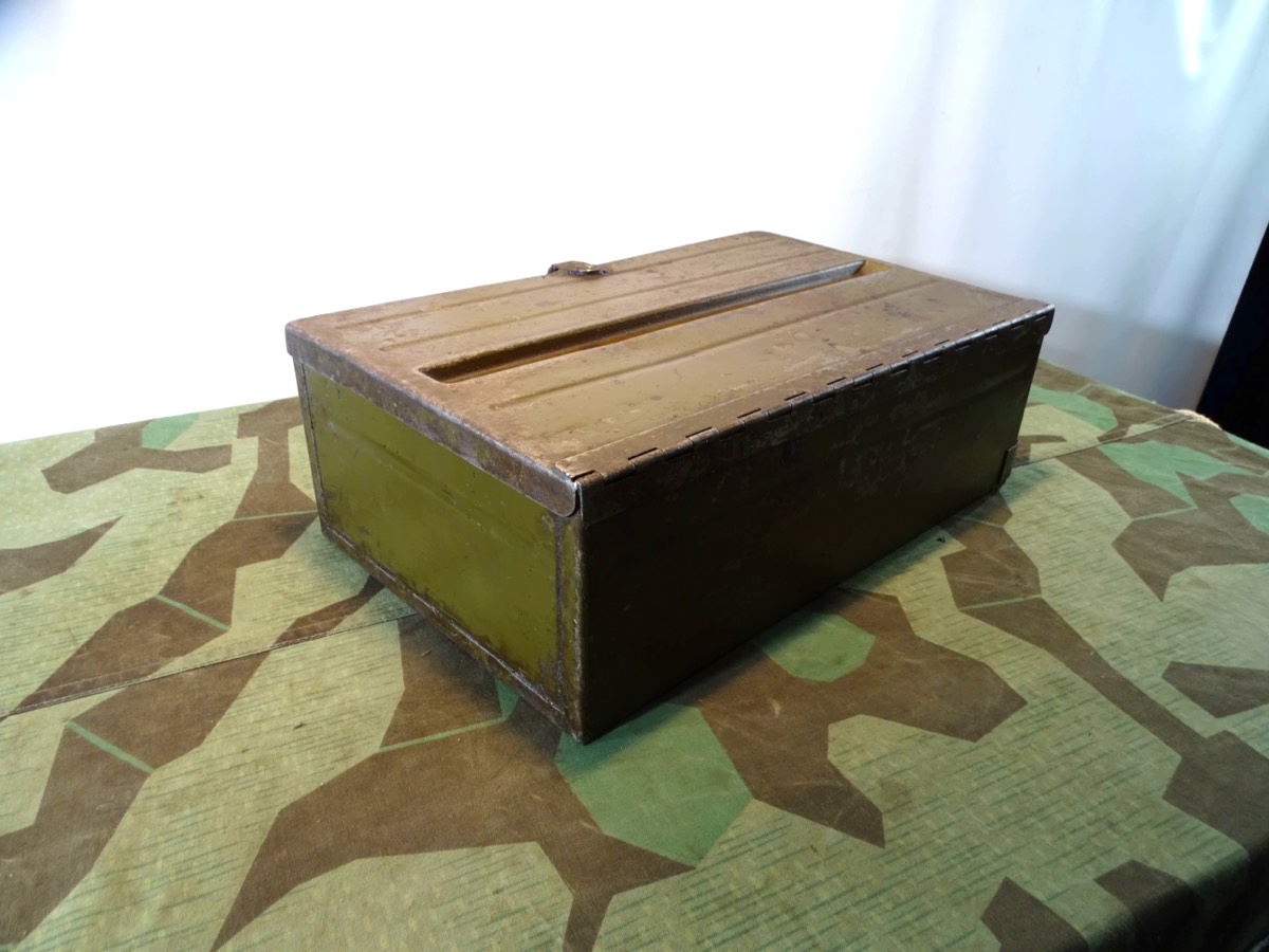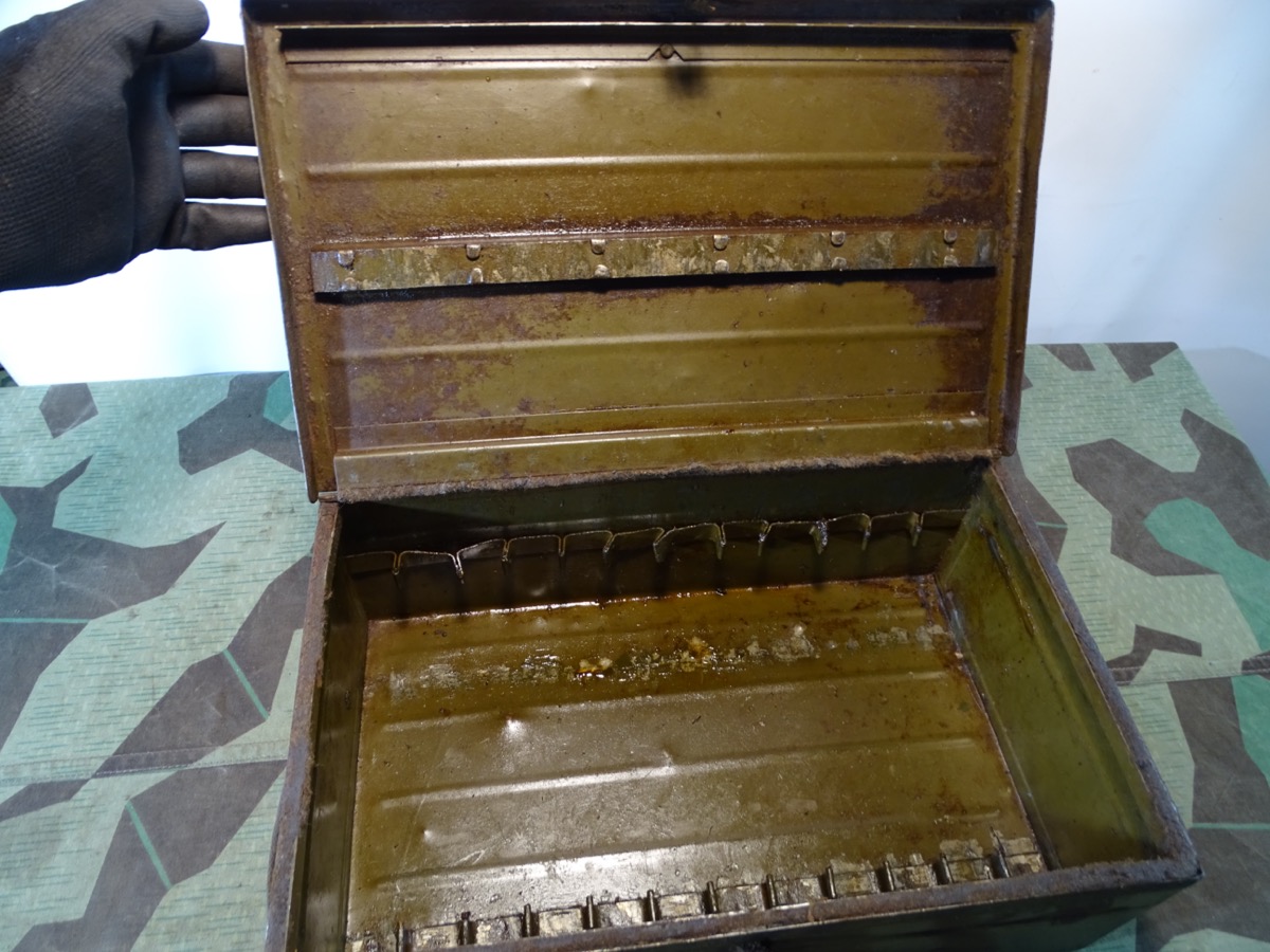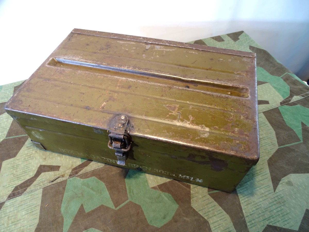 Britischer Magazinkasten für 12 Brenn MG Magazine 2. Weltkrieg, Top Beschriftung
