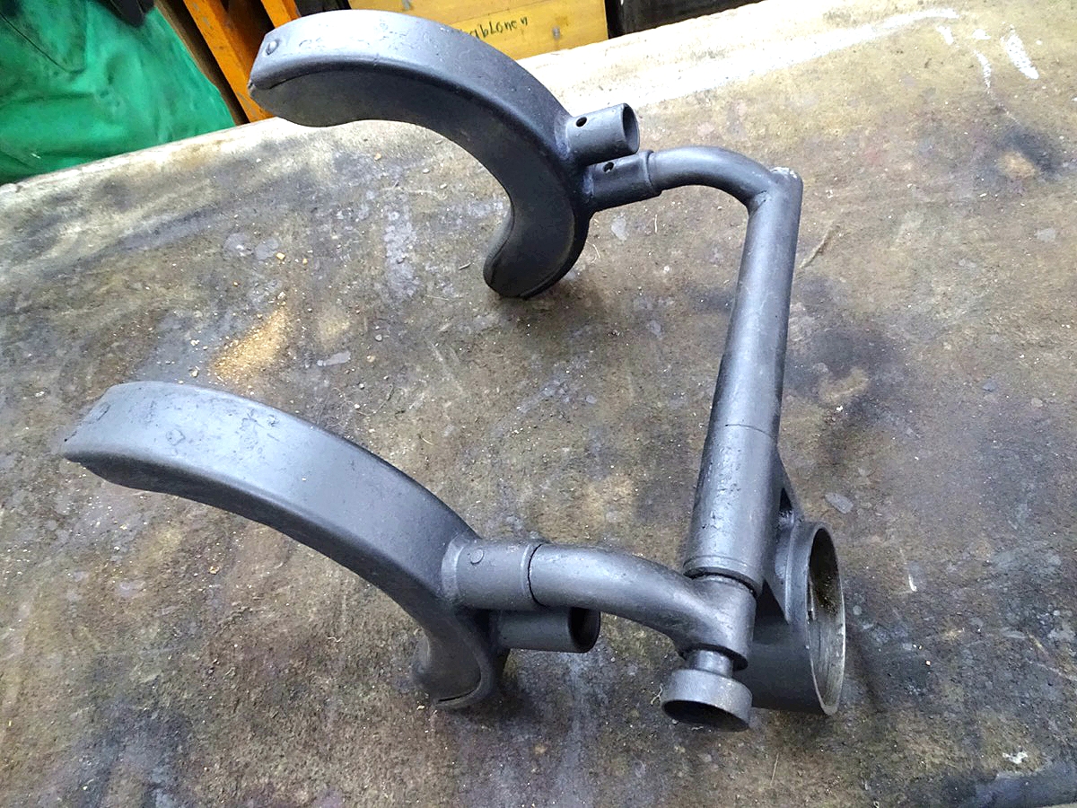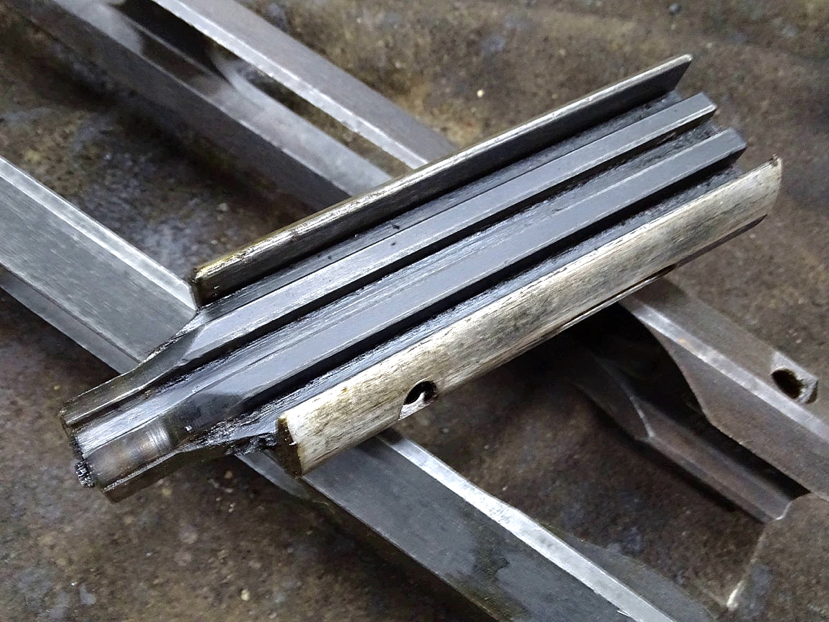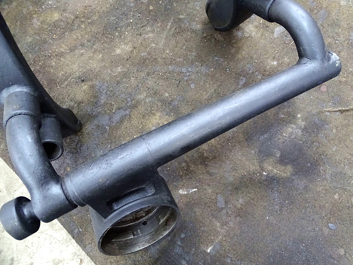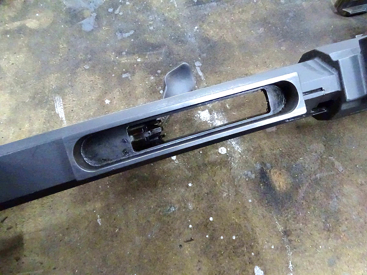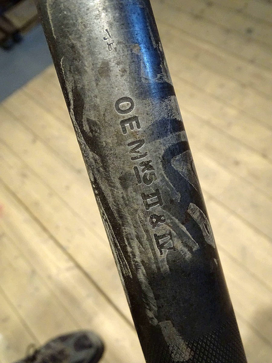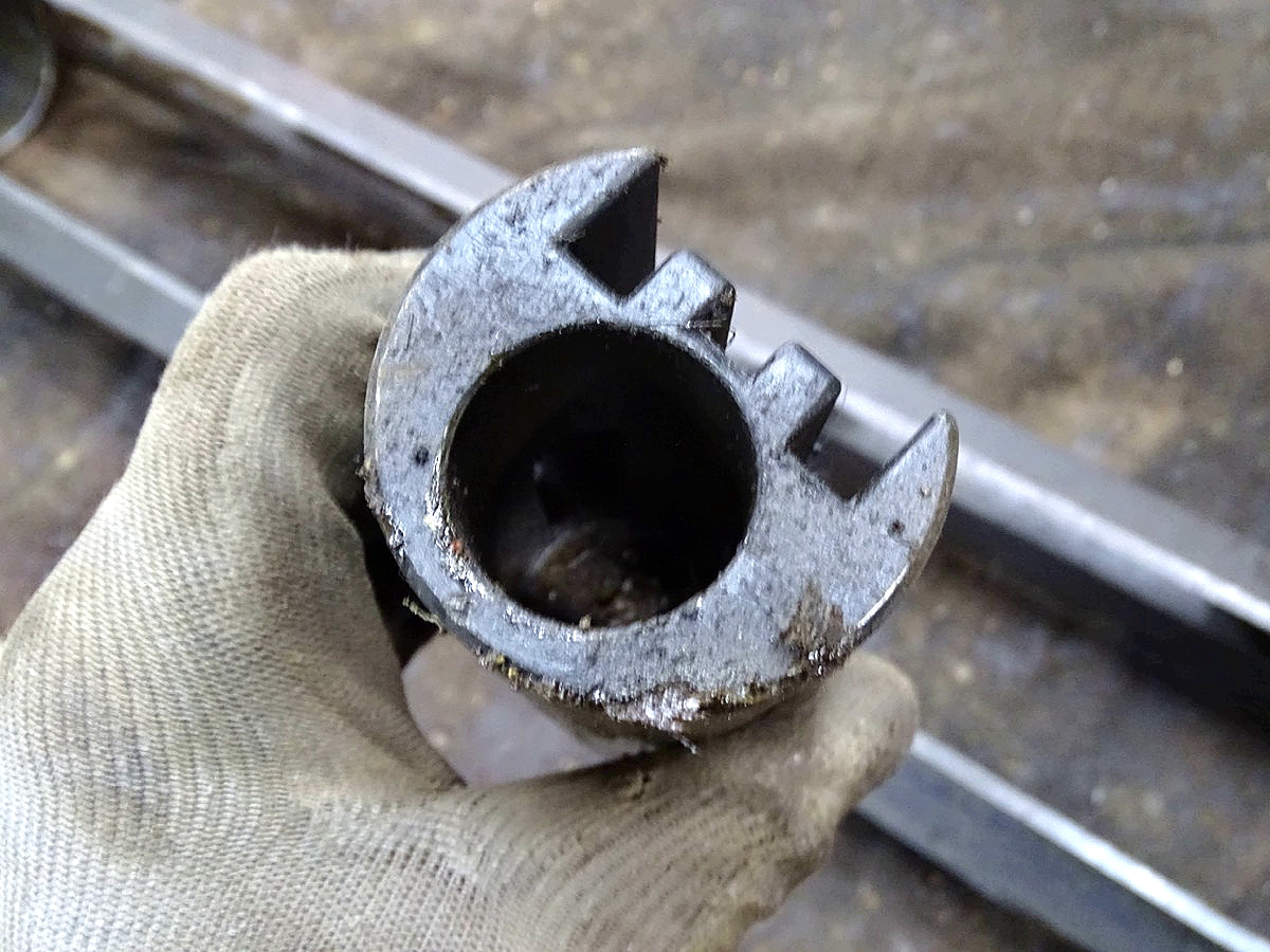 Geliefert werden die fotografierten Bauteile. Dekoumbau. Abgeändert nach den Bestimmungen des KWKG. Optisch so unauffällig wie möglich geändert. 7 kalibergroße Lochbohrungen im Lauf. In vorderster Lochbohrung ein gehärteter, kalibergroßer Stahlstift verschweißt, der den Lauf- Innendurchmesser vollständig ausfüllt. Im Patronenleger ein gehärteter, kalibergroßer Stahlstift eingesetzt und flächig verschweißt. Schlosskopf auf ca. 1 cm gekürzt, so dass der Stoßboden vollständig entfernt wurde. Schlagbolzenaustritt flächig verschweißt.