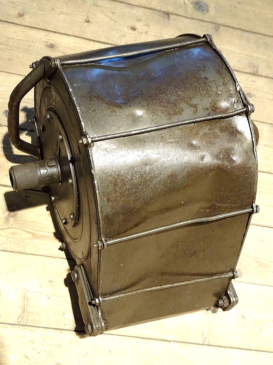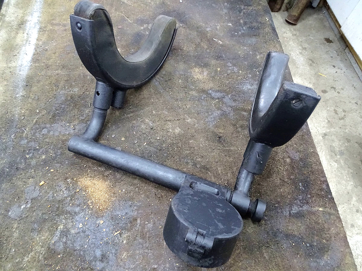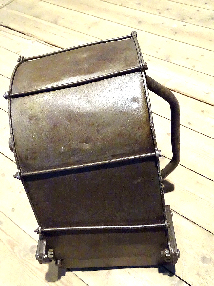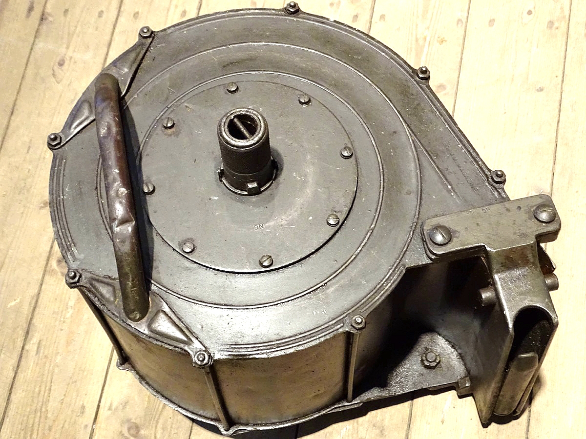 Die Behelfslafette in lehmgelb. Bei der Behelfslafette handelt es sich unserer Meinung nach um eine Nachkriegs Fertigung nach 1945. Behelfslafetten dieses Modells wurden so aber auch um 1944/45 in Deutschland für Marine, Küstenverteidigung und Front produziert. In der späten Kriegsphase baute man viele Waffen der Kriegsmarine und Luftwaffe für den Erdkampf um und vereinfachte die Fertigung von vielen Waffenteilen stark. Man kann die Beine arretieren und anklappen und die Höhe verstellen und die Waffe 360 Grad drehen und flach bis steil nach oben ausrichten. Die Lafette dürfte ca. 60 Kg wiegen, das Waffensystem ca. 100, das Magazin ca. 20, zusammen also grob 170-200 KG . Bei Aufstellung sollte das Stück auf jeden Fall -wie im Einsatz - am Boden auf dem Sockel gut befestigt werden, da die Kanone sonst durch das hohe Waffengewicht bei Bewegungen zu instabil steht und umfallen würde. Kanone aufstellen und über die Standplatten der Lafette einen Balken als Riegel an der Palette fest schrauben, alles dabei. Eine solche Lafette würde bei einer Schlosserei als Einzelanfertigung ca. 1800-2000€ kosten. Somit verbleibt bei einem Verkaufspreis von 4900€ für das Waffensystem mit den 2 Magazinen und Kleinteileset und Sockel ein reiner Kaufpreis Anteil von nur 3000€. Wir verkaufen das Waffensystem aber nicht einzeln, da wir sie mit der Lafette angekauft haben und eine einzelne Lafette für uns schwer verkäuflich ist, da kaum einer einzelne Waffen dazu besitzt.