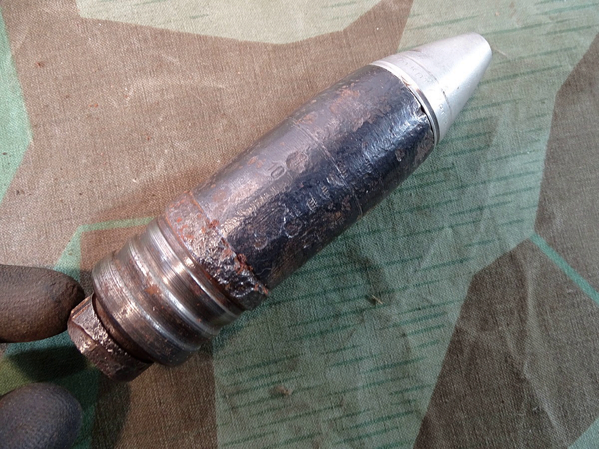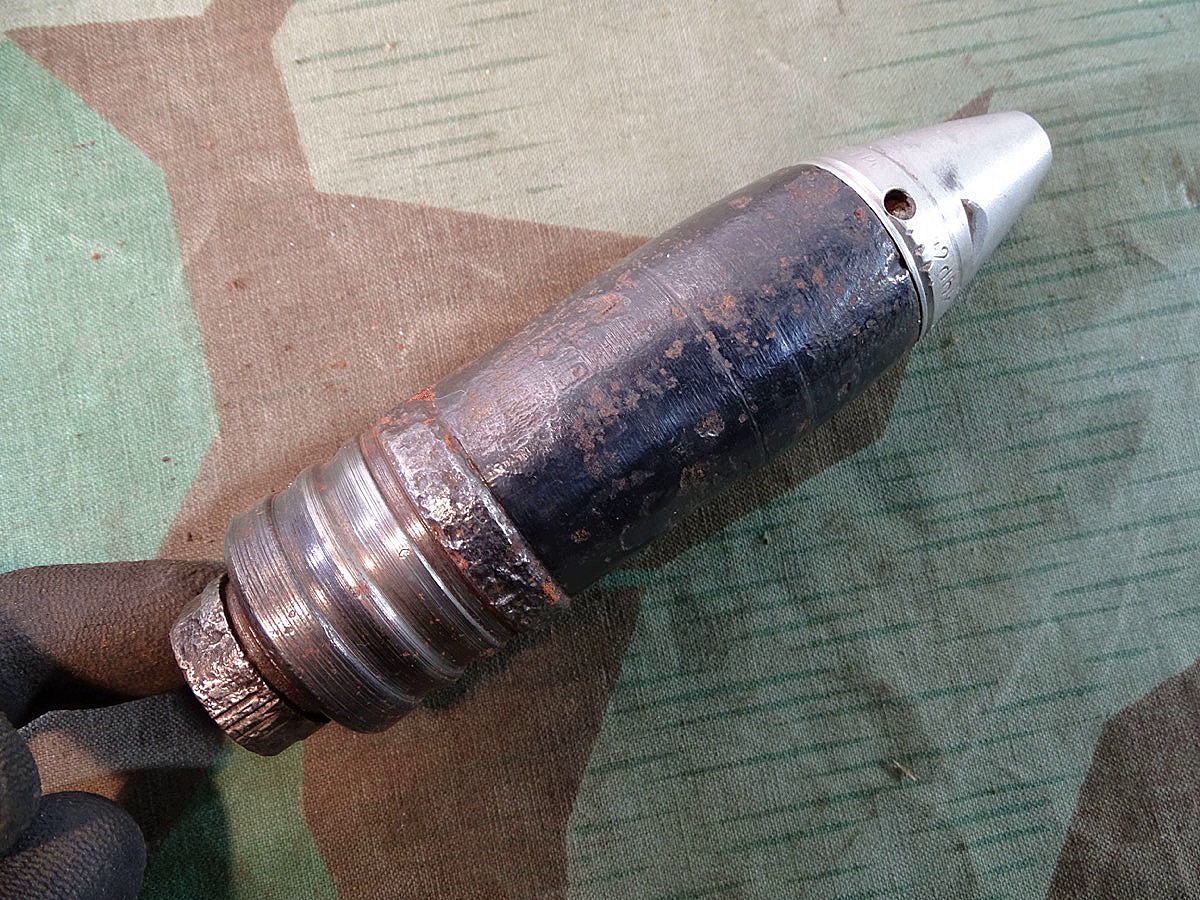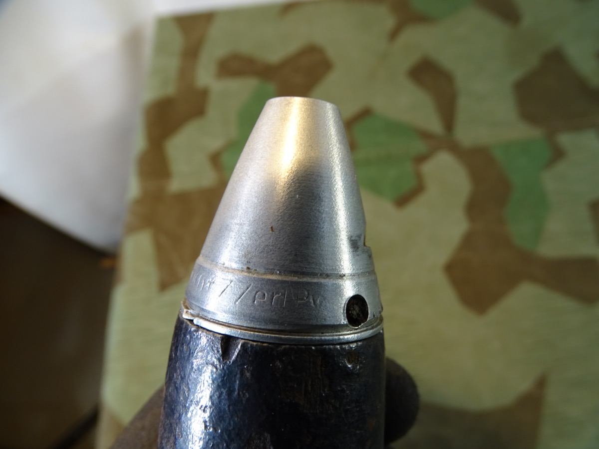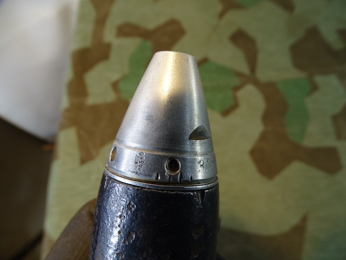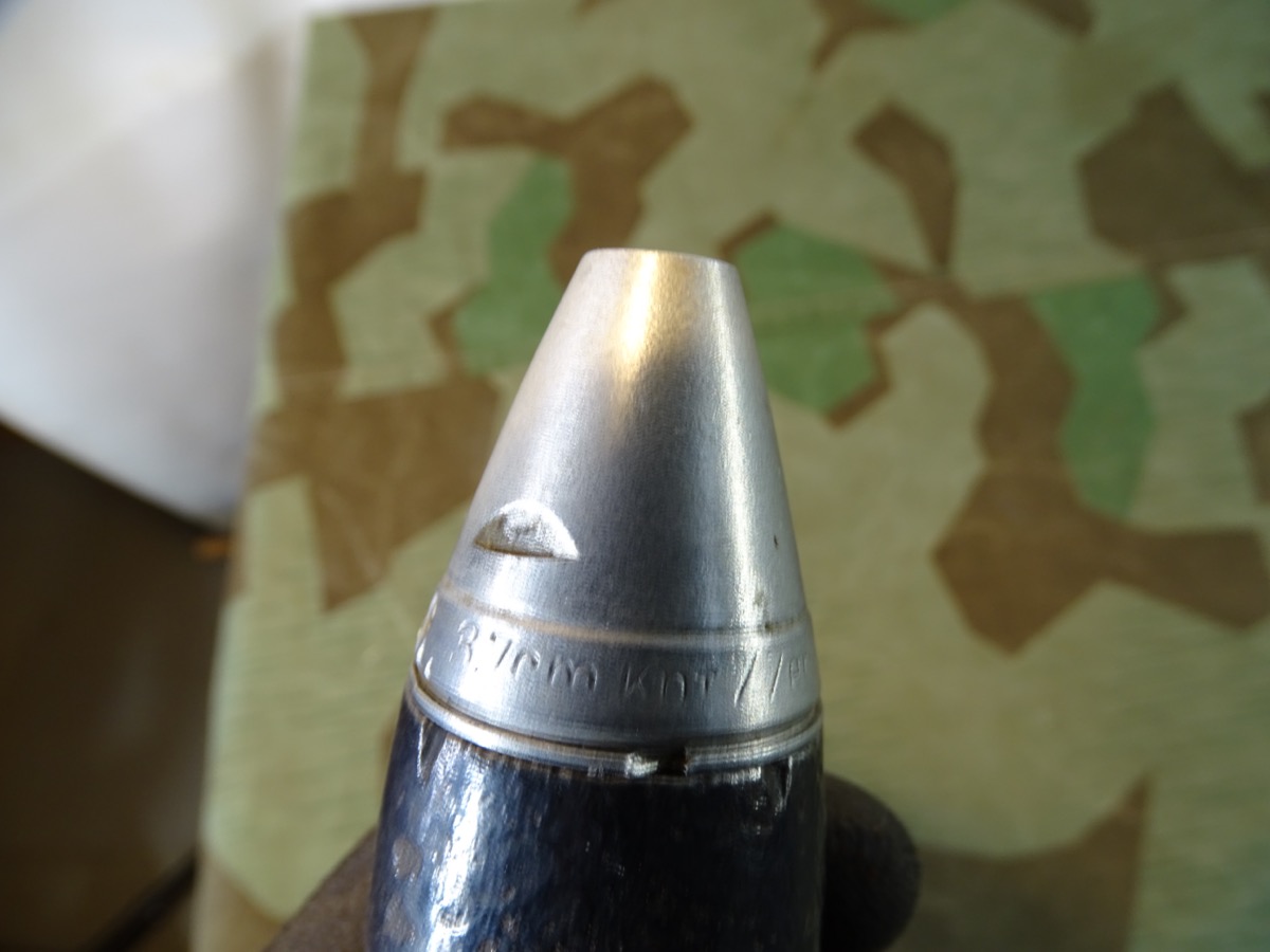 Produktinformationen "Deko Geschoss für 3,7 cm Flak Granate, mit sehr schönem Alu Zünder Hst: dbk 42 u. Leuchtspureinsatz "